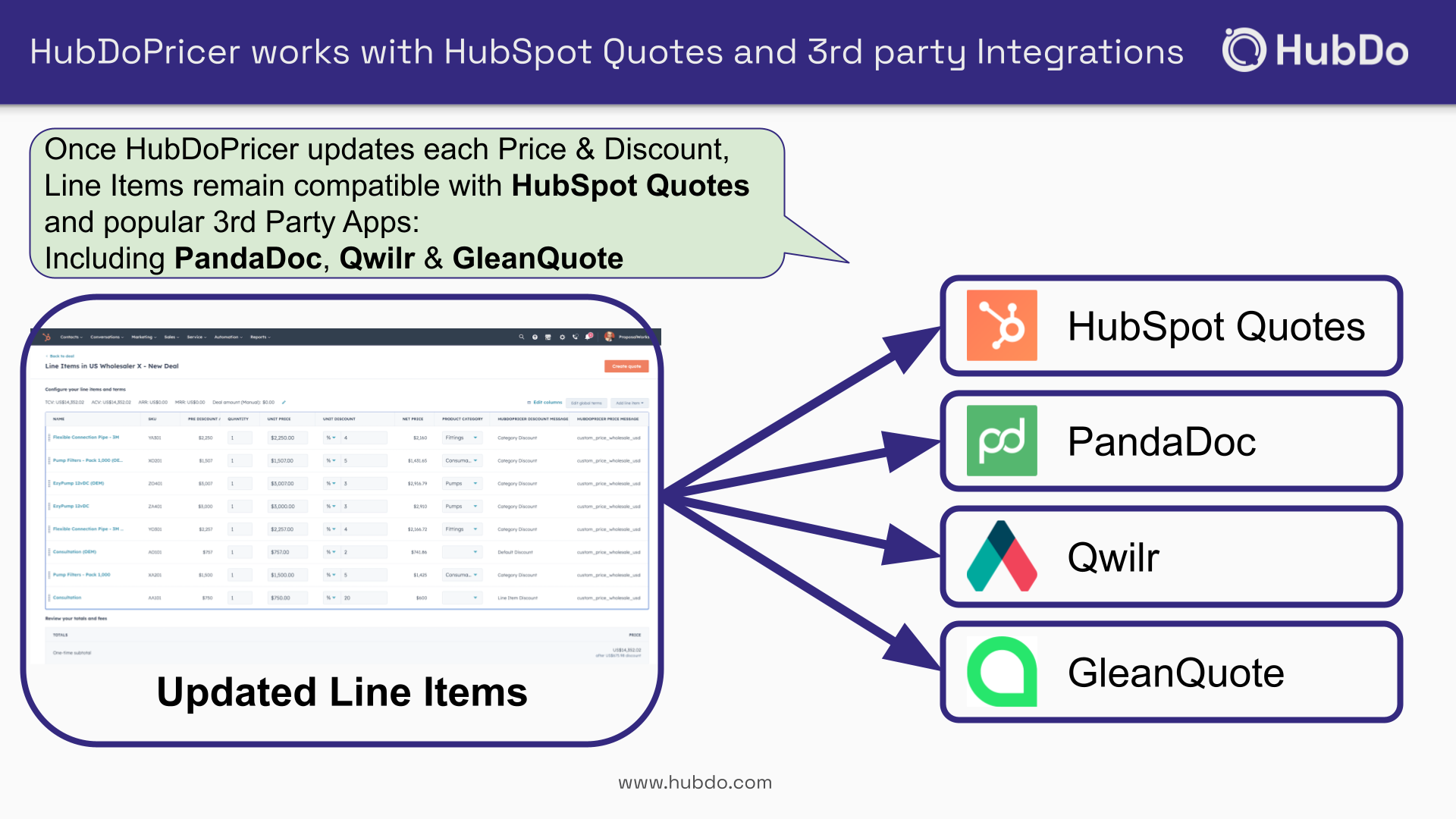 Works with HubSpot Custom Quotes and popular Proposal Apps