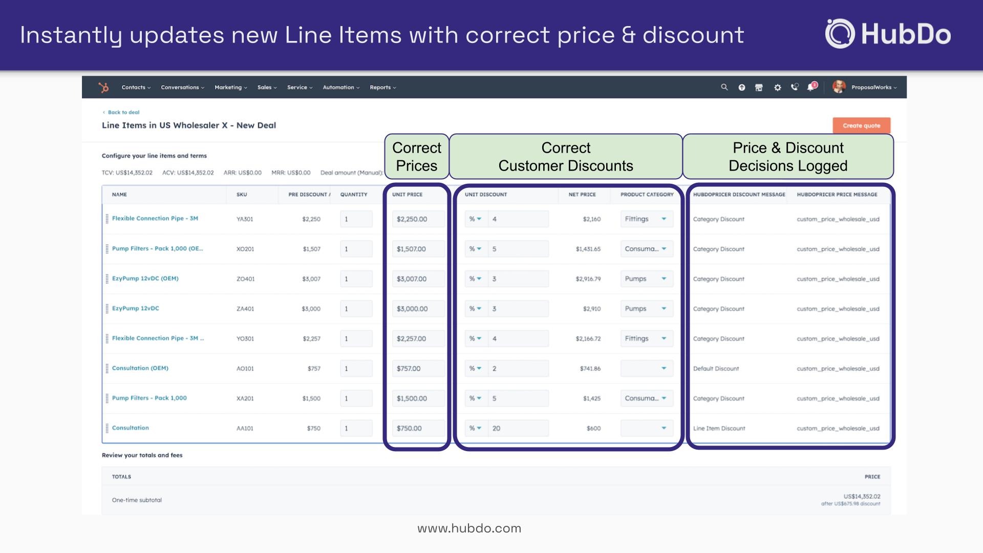 Key benefit: ERP-level pricing accuracy combined with the agility of HubSpot quoting
