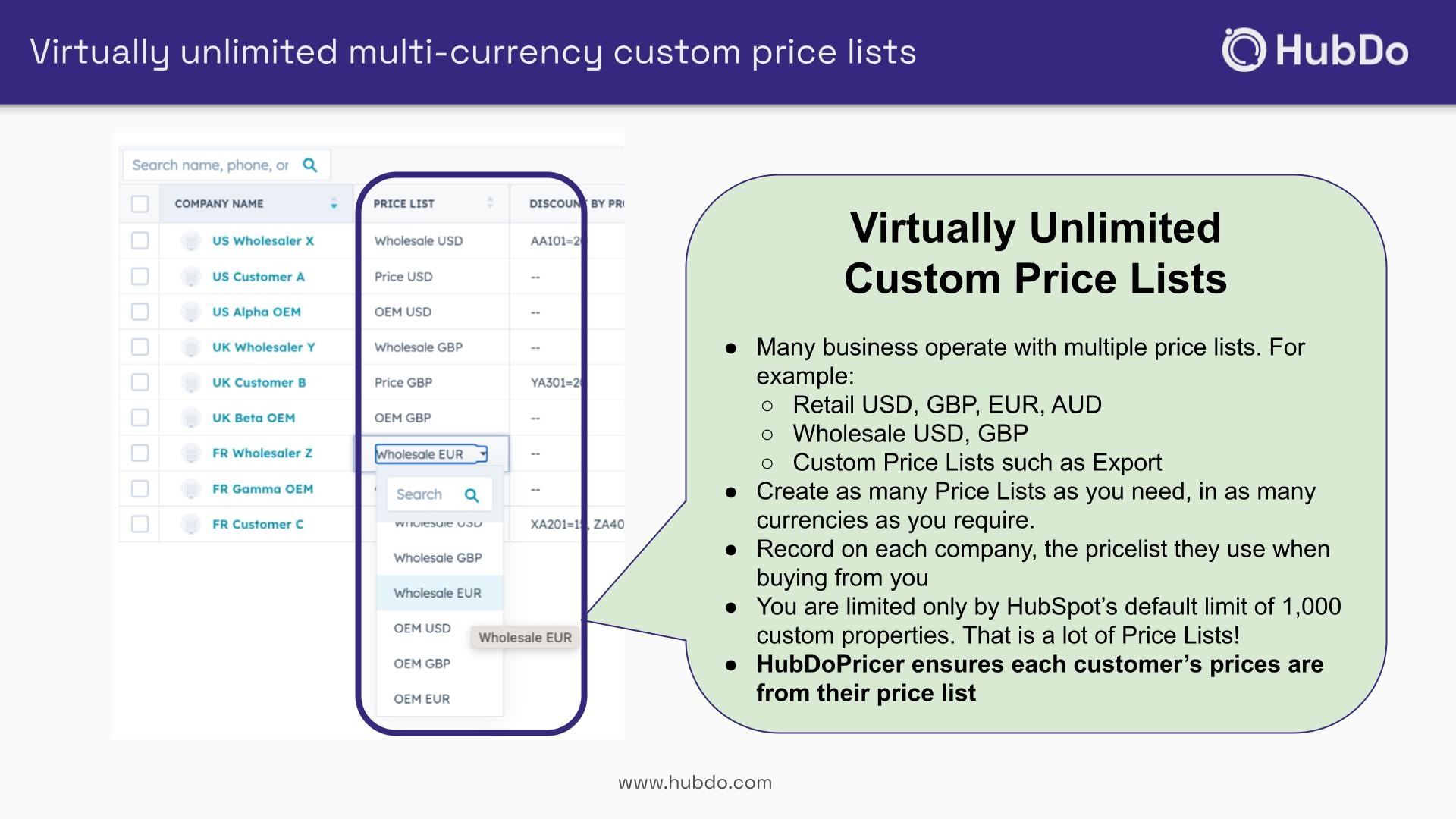 HubSpot's default approach lacks flexibility for businesses with unique pricing structures, such as wholesalers, resellers, and manufacturers.