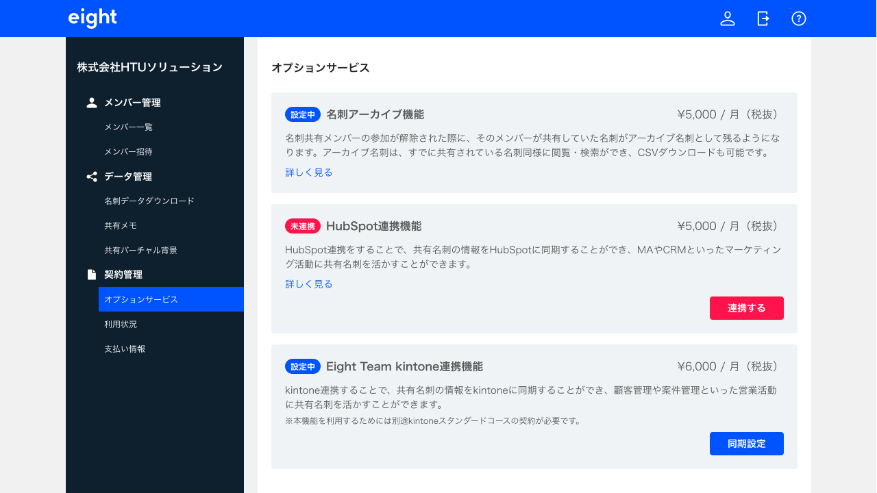 ※ Eight Teamのご契約、HubSpot連携オプションは年間契約となります
