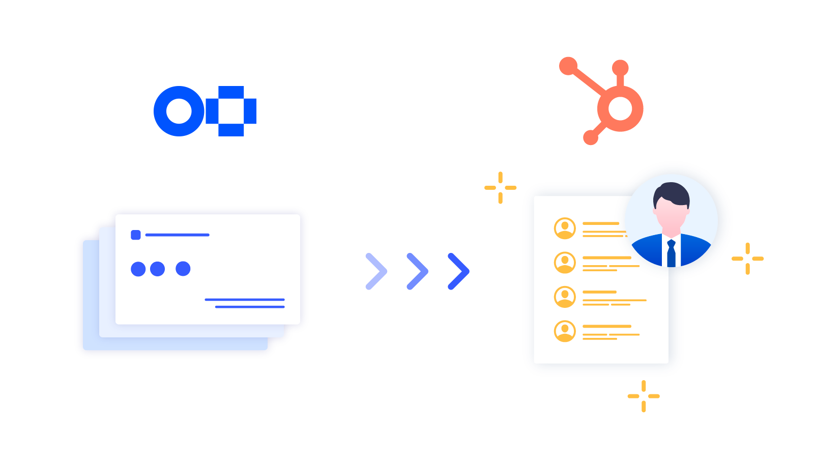 Eight Teamで共有している名刺情報を、メールアドレスをキーにHubSpot のコンタクトへ同期します。名刺の基本情報(会社名、氏名、電話番号など)に加えて、Eightが提供する接点情報の項目(共有タグ、Eight TeamプロフィールURLなど)も連携します。メールアドレスがHubSpotに存在しない場合は新規コンタクトとして登録され、存在する場合は空欄のプロパティーが補完されるとともに、接点情報などの既存情報が上書きされます。