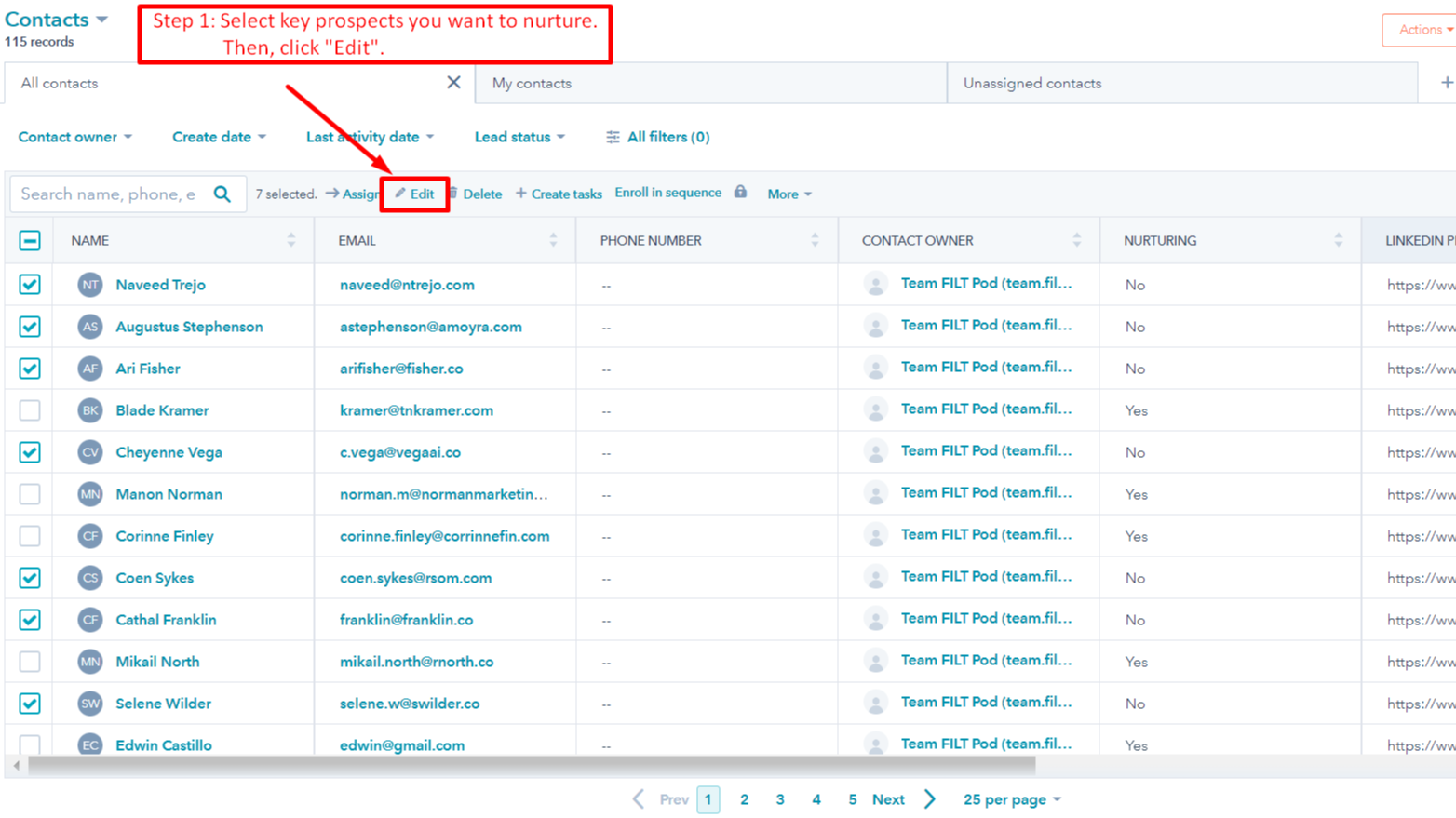 Select Contacts to Nurture