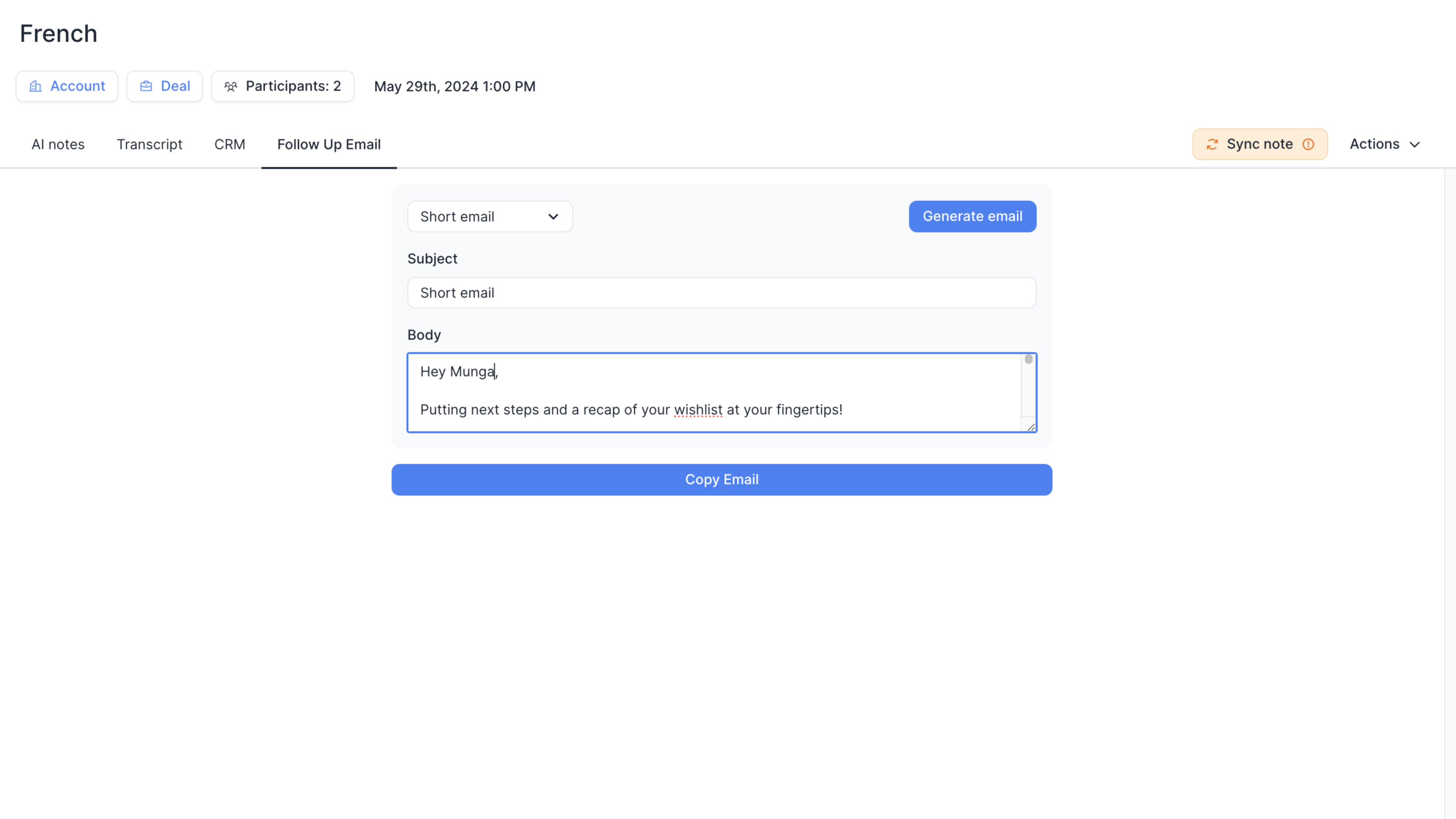 Epicbrief makes typing out laborious follow-up emails a thing of the past by generating a comprehensive and ready-to-send draft immediately post-call. Unlike many of the other AI tools out there, Epicbrief further tailors the tone-of-voice of each email to the specific client based a series of customisable preferences.