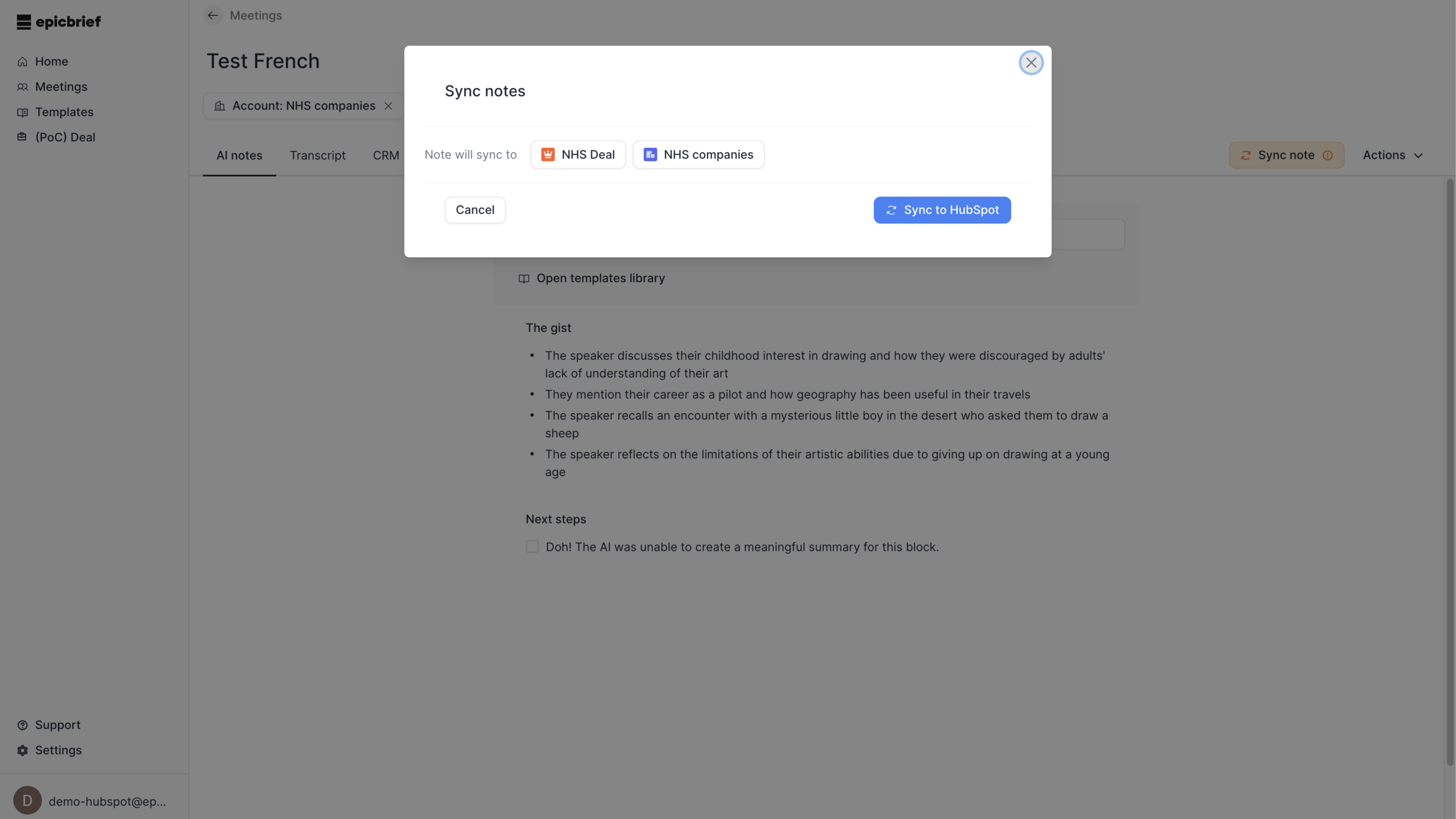 Finally my transcripts and the summary of it get uploaded to HubSpot instantly. Gone is the hassle of finding the transcript and laboriously moving it.