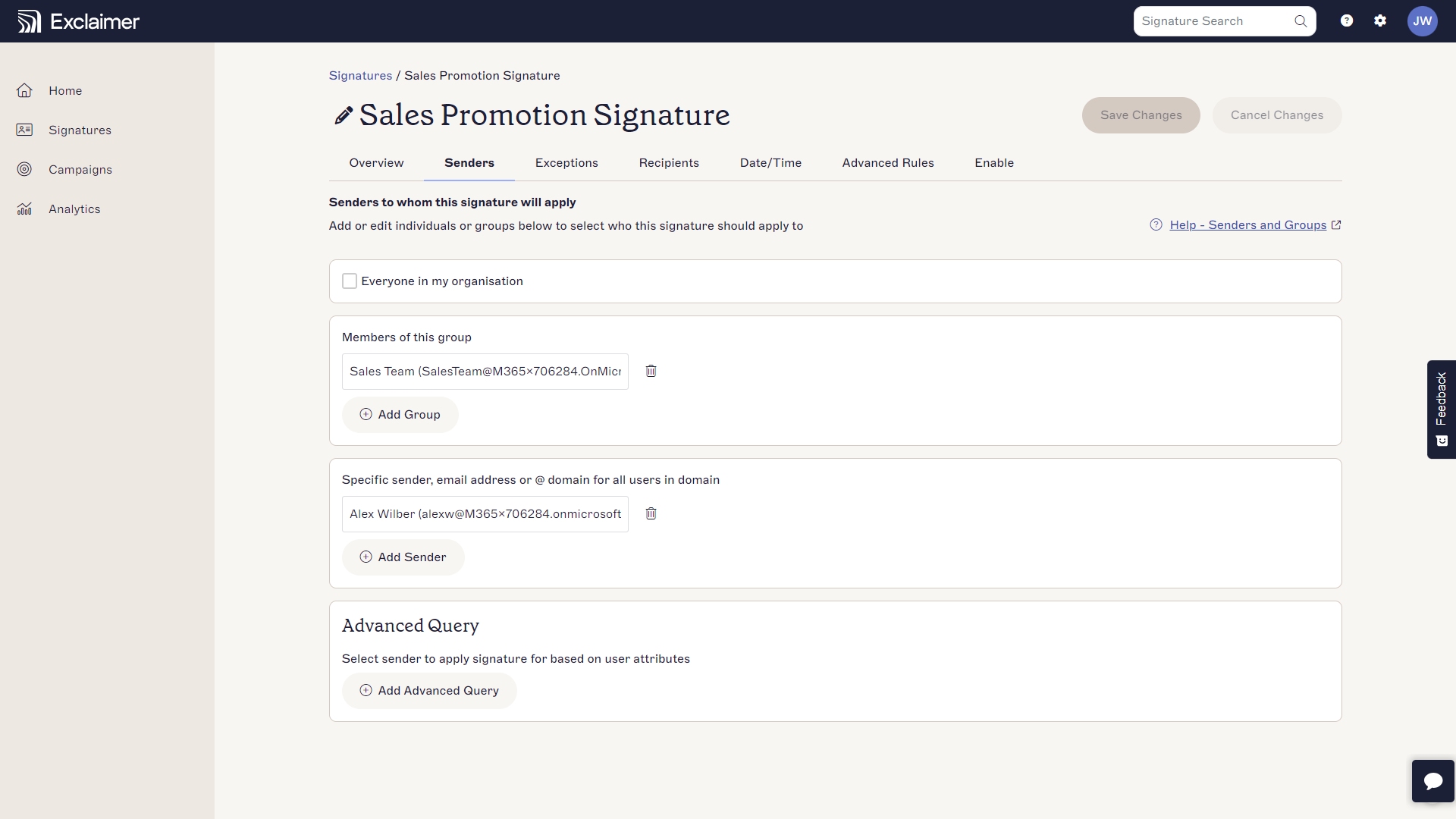 Automatically deploy signatures to specific teams or departments.