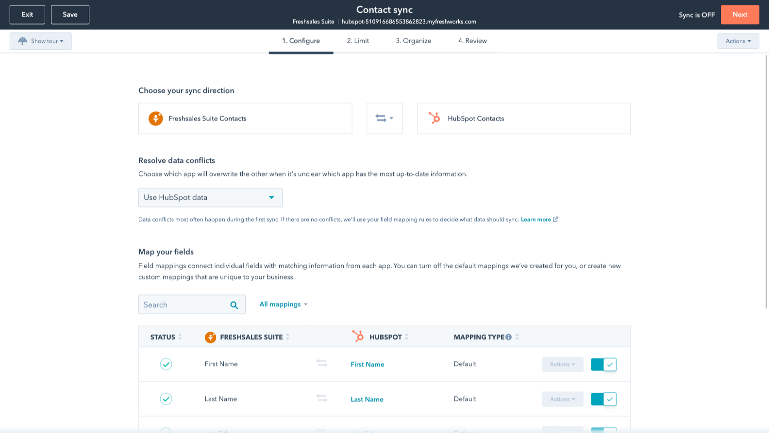 Data Sync - Sync Freshsales Suite data with HubSpot