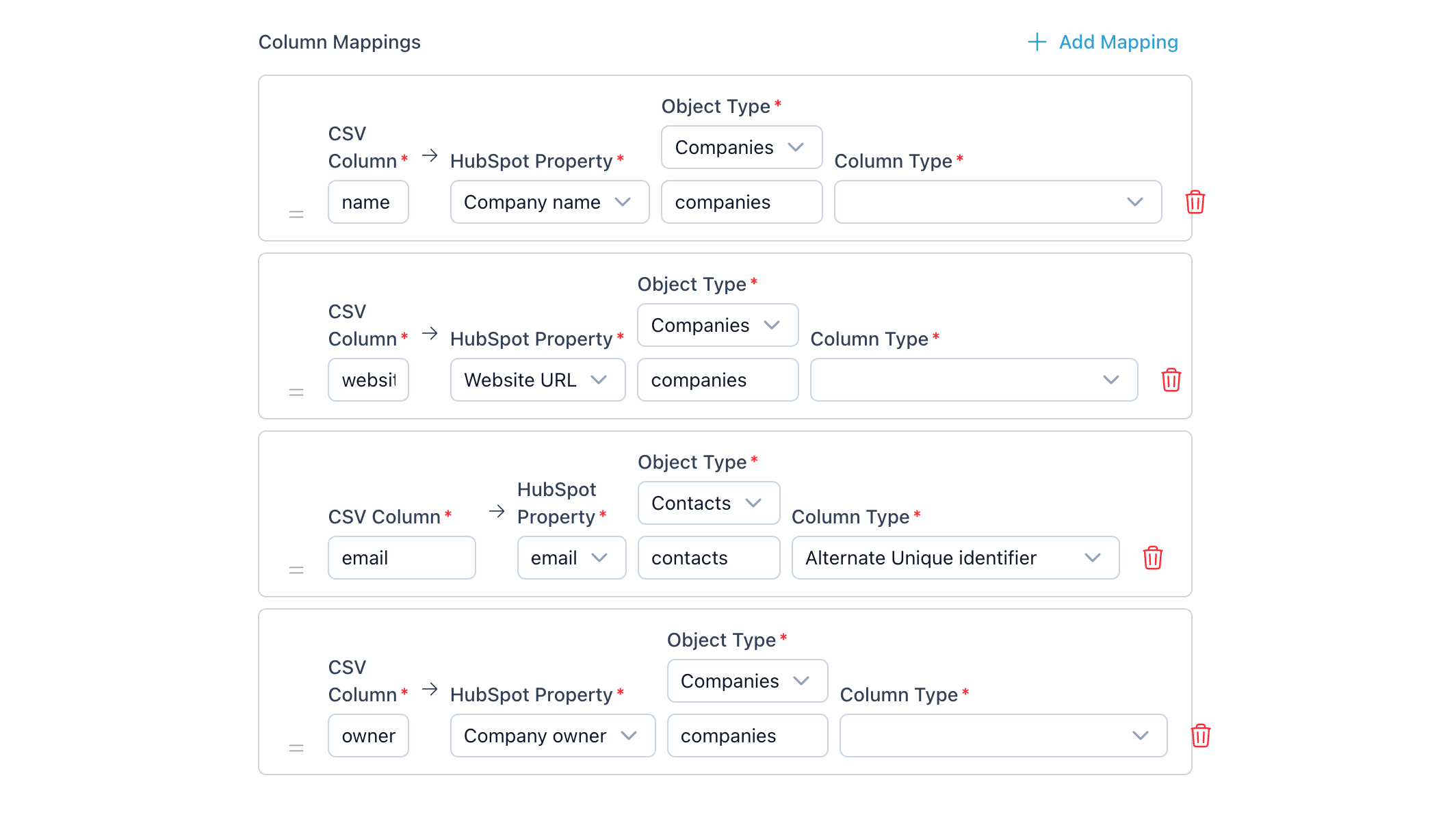 Customize how external data is matched to HubSpot objects and properties. Standardize formats (dates, dropdowns, IDs) before insertion to avoid dirty data and reduce manual corrections.