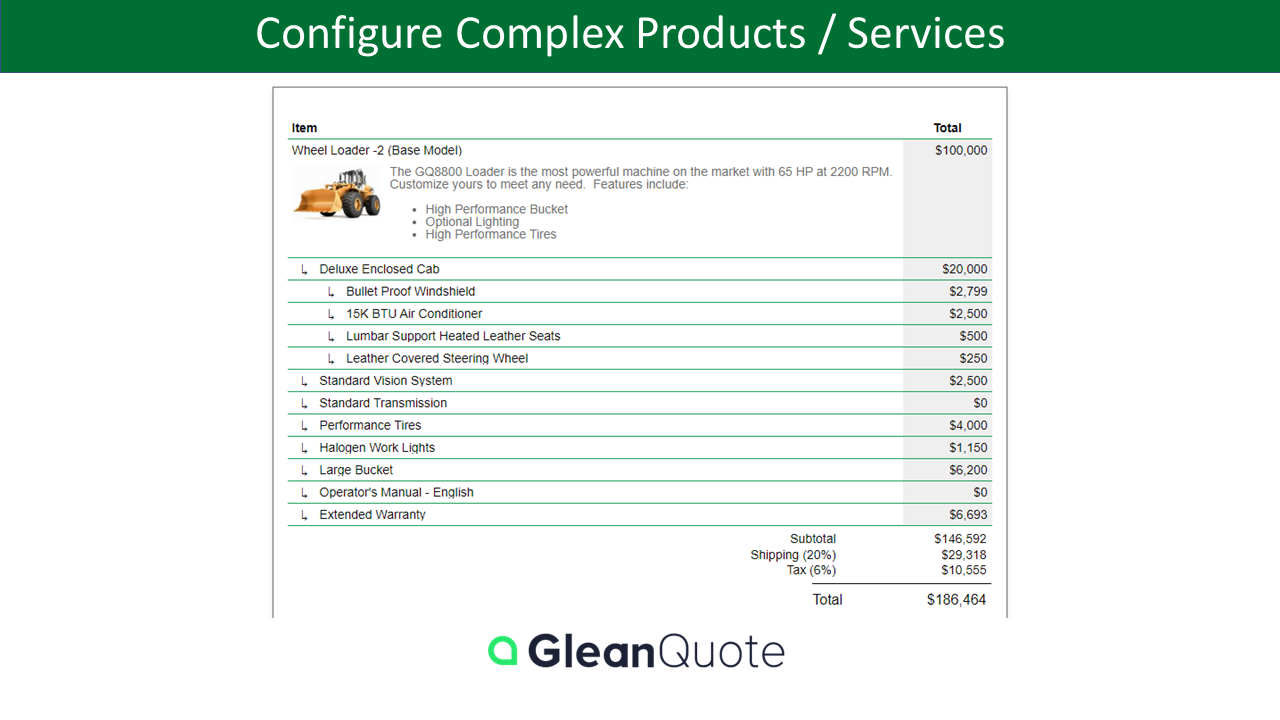GleanQuote helps teams that have configuration, pricing and proposal generation challenges. Our full CPQ solution is easy to implement and easier to use.