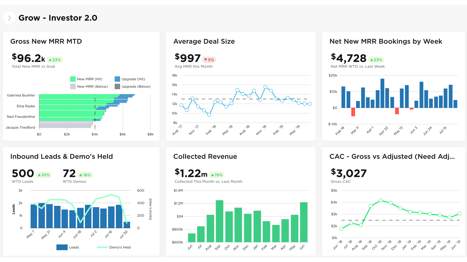 From marketing and sales to revenue and retention, Grow keeps a pulse on your company’s health and gives you full-funnel visibility so you can grow faster.
