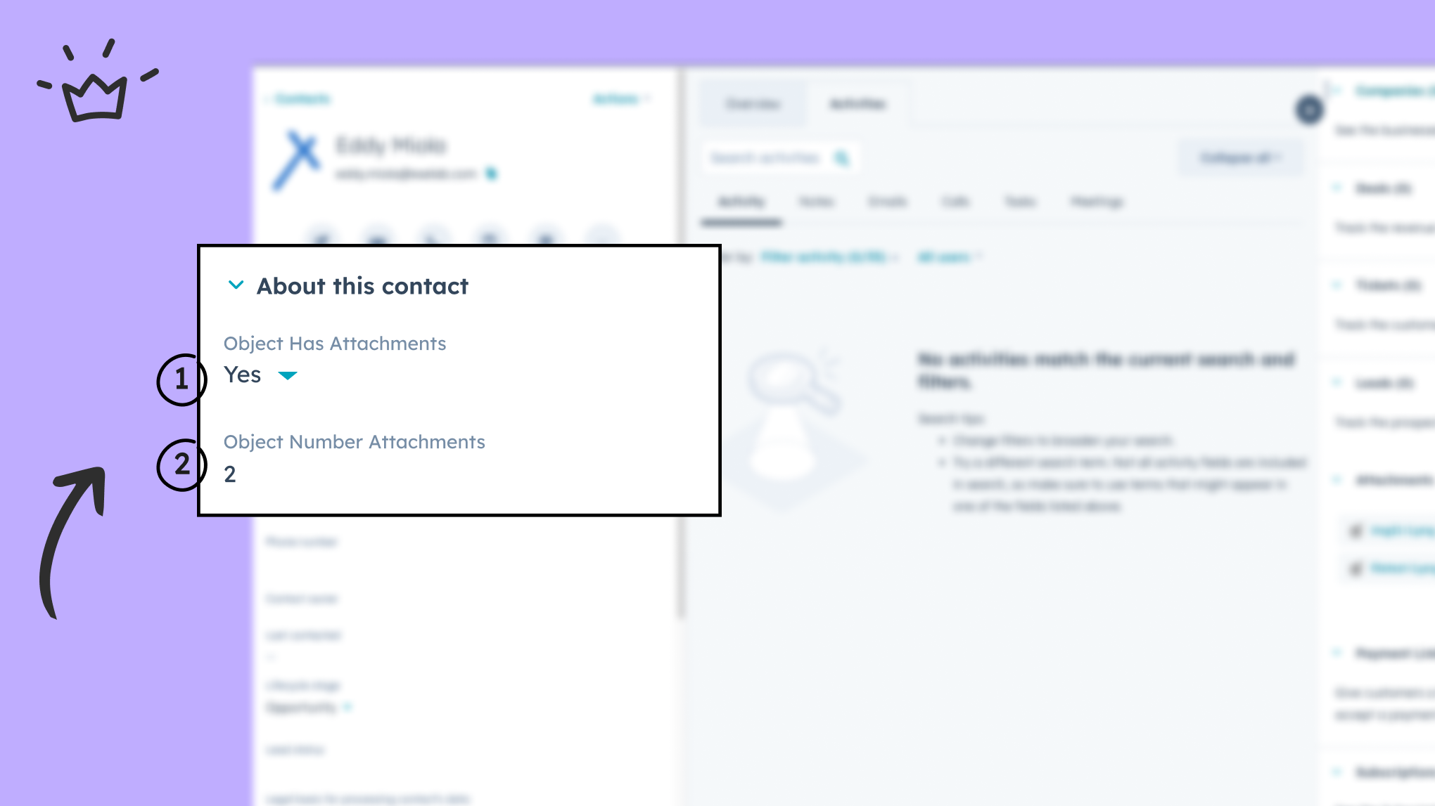 Discover with a dynamic property whether your objects have attachments associated with them or not. This data will always be filled in your database, so you can use this value as you prefer in the CRM.
