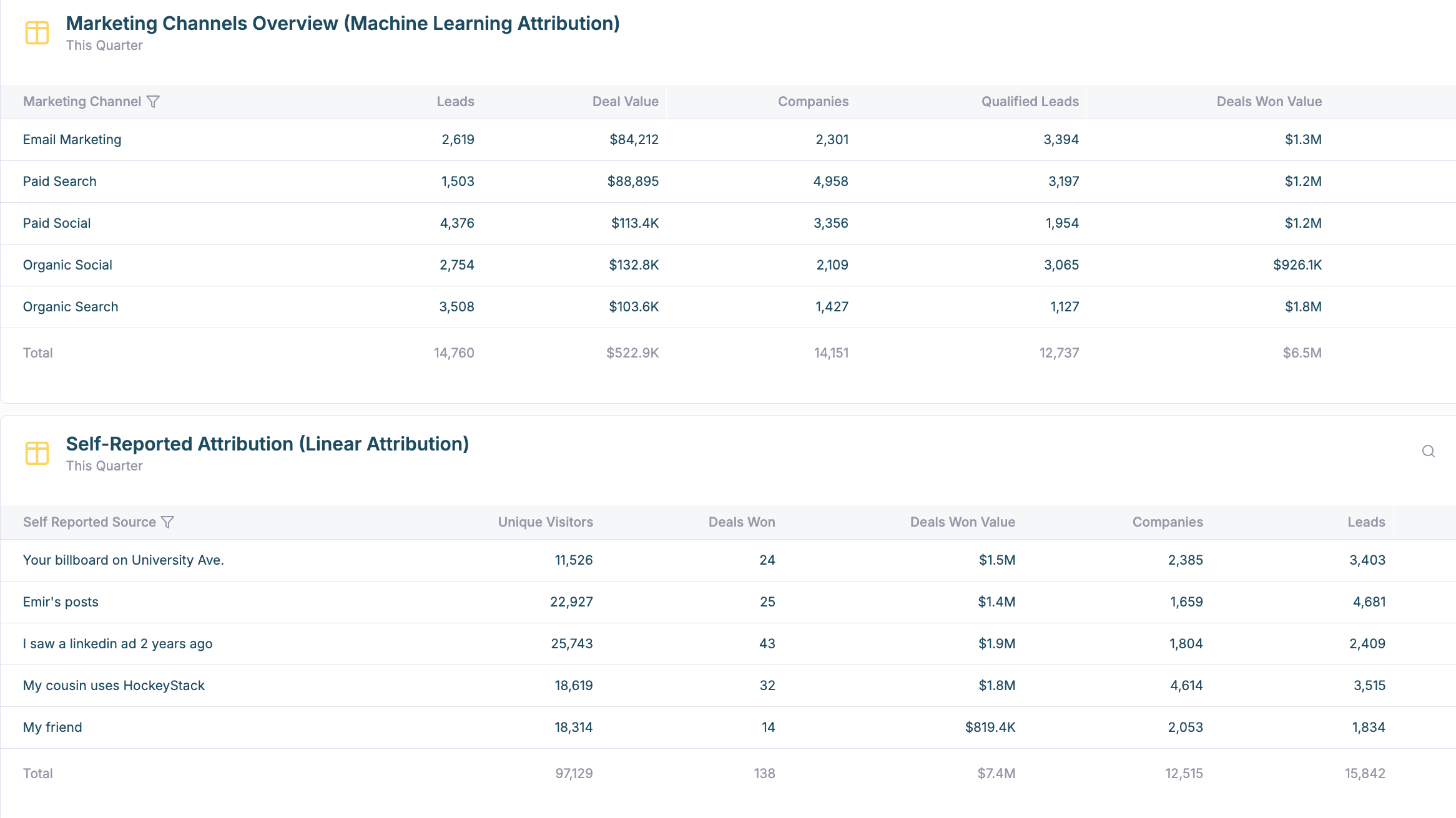 We're pretty new users of HockeyStack, but so far really love it! It's been a really helpful way to get HubSpot data (we use HubSpot MAP and CRM), as well as Google Analytics type data, AND attribution. It allows for hybrid attribution (self-reported AND software-reported) as well, which is super helpful. Still digging into its full potential, but it's like a marketing BI tool that's easy to use and actually helpful.