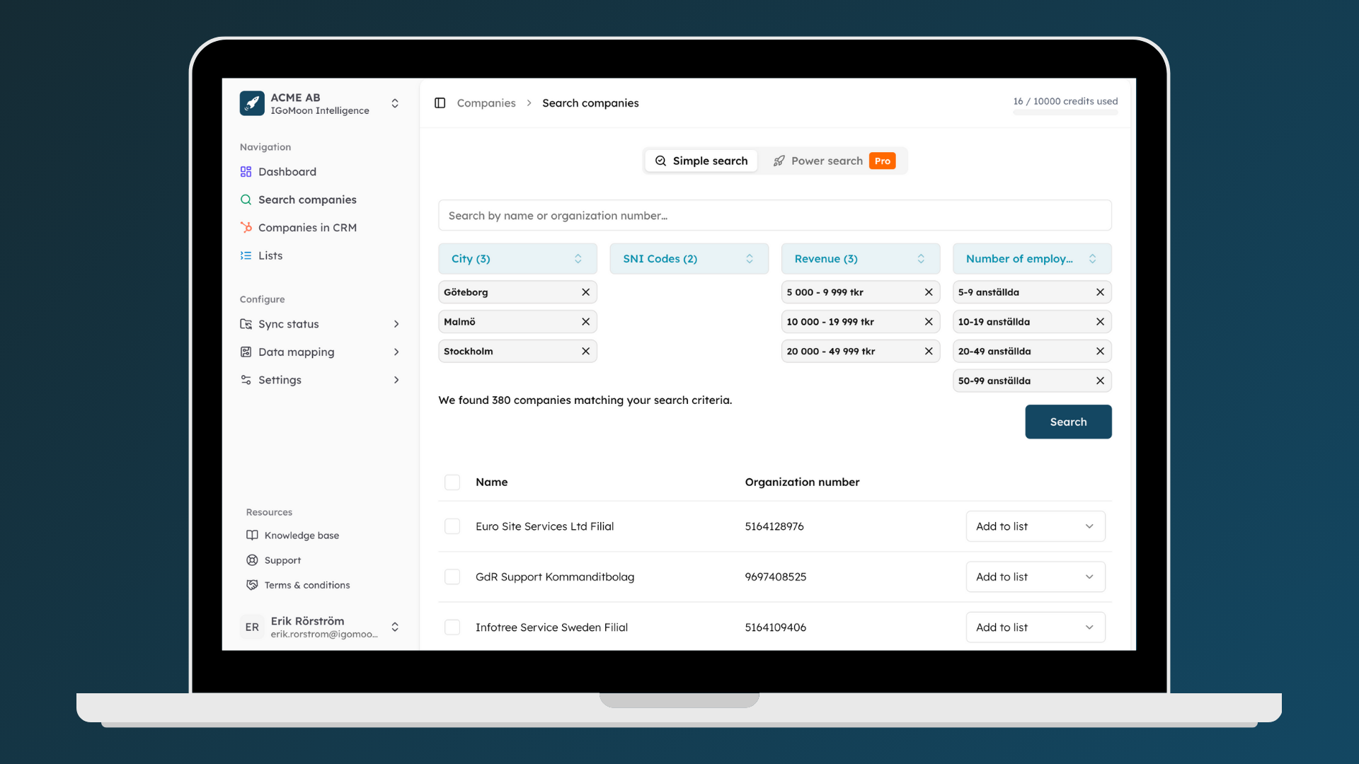 ✅ Access organization numbers and industry classifications (SNI) for better segmentation and compliance