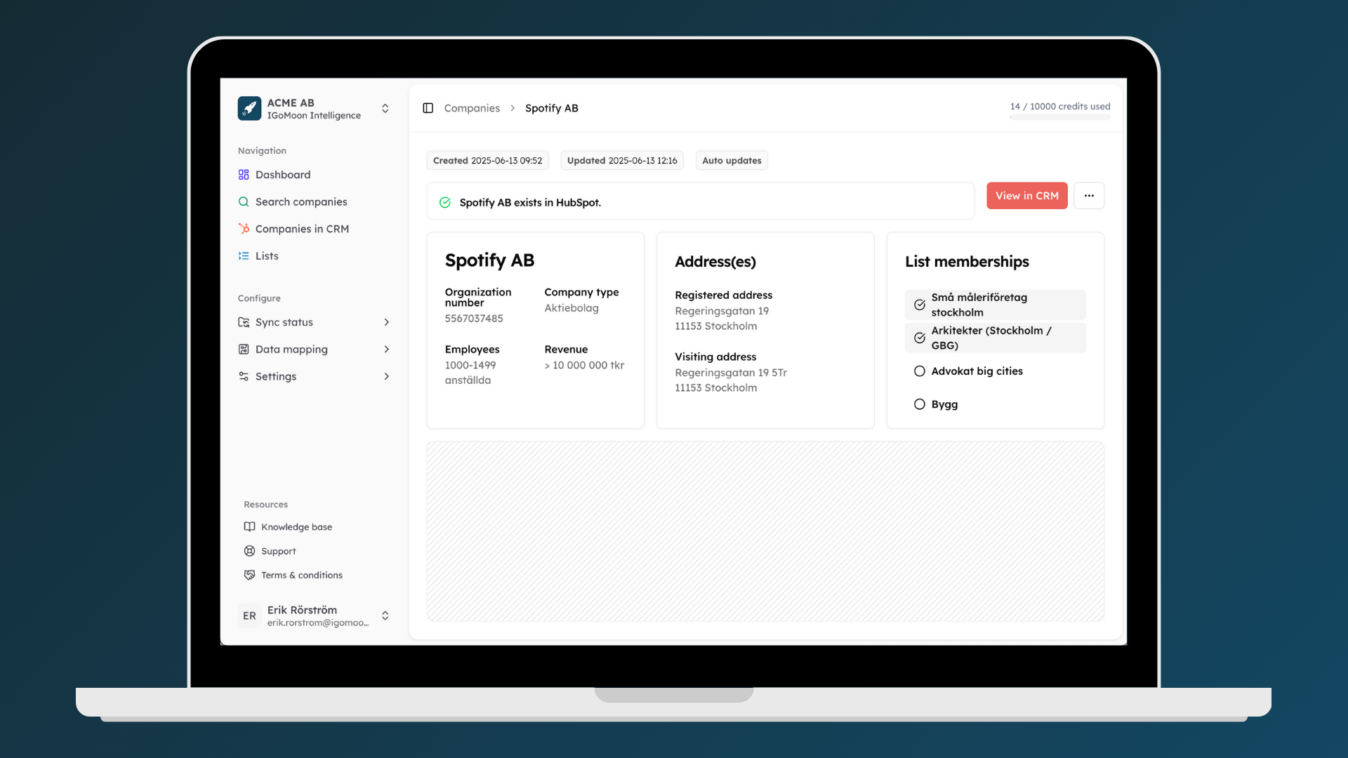 Get started for free — real Swedish company data, straight into HubSpot