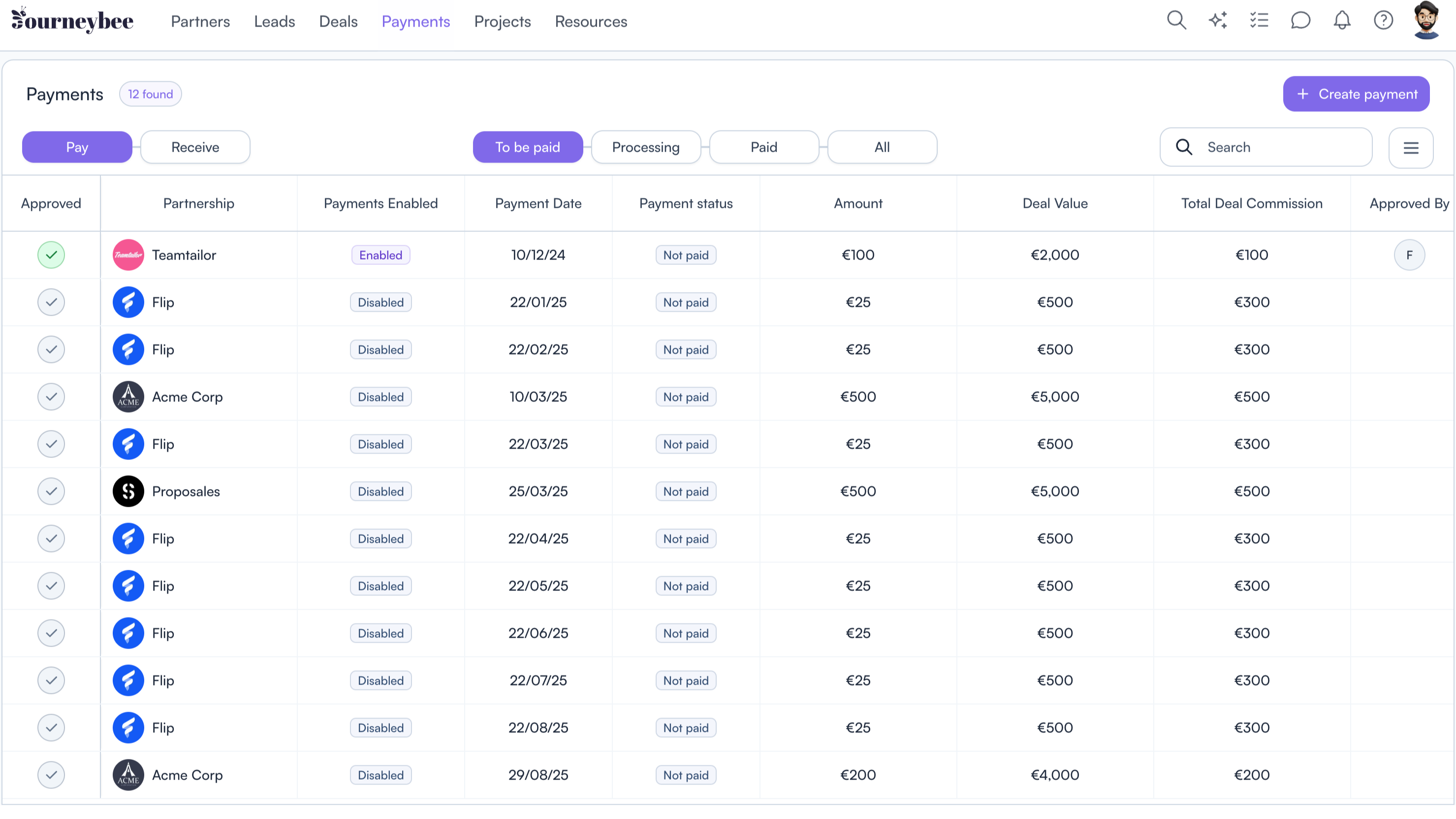 Send and receive commission payments with your partners to better automate and track your partnership revenue streams.