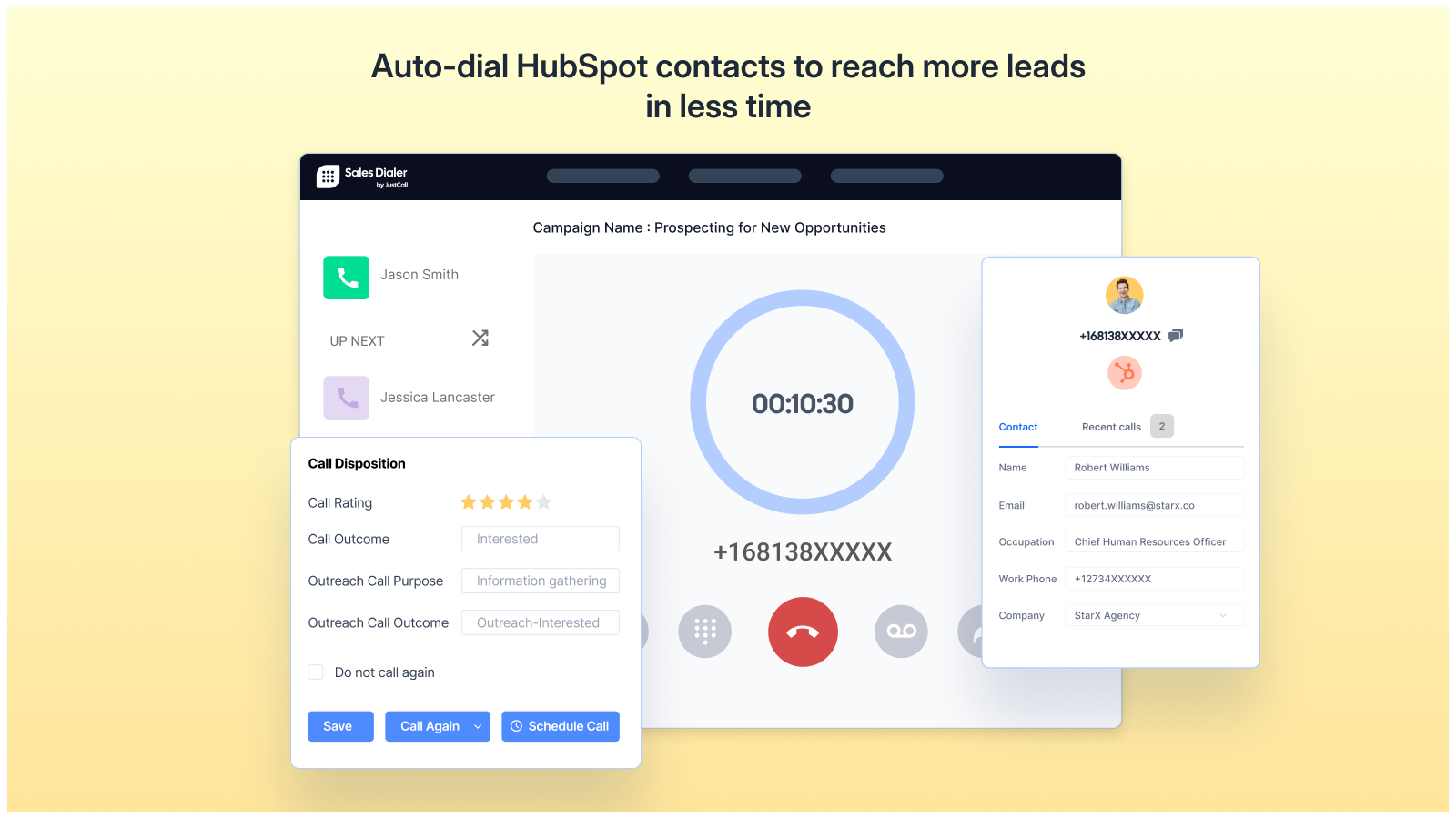 Make calls to HubSpot contacts in a click with JustCall's built-in dialer. No more switching tools.