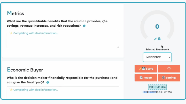 Meddicc Score Subscription - Free, Premium, Team, or Enterprise plans