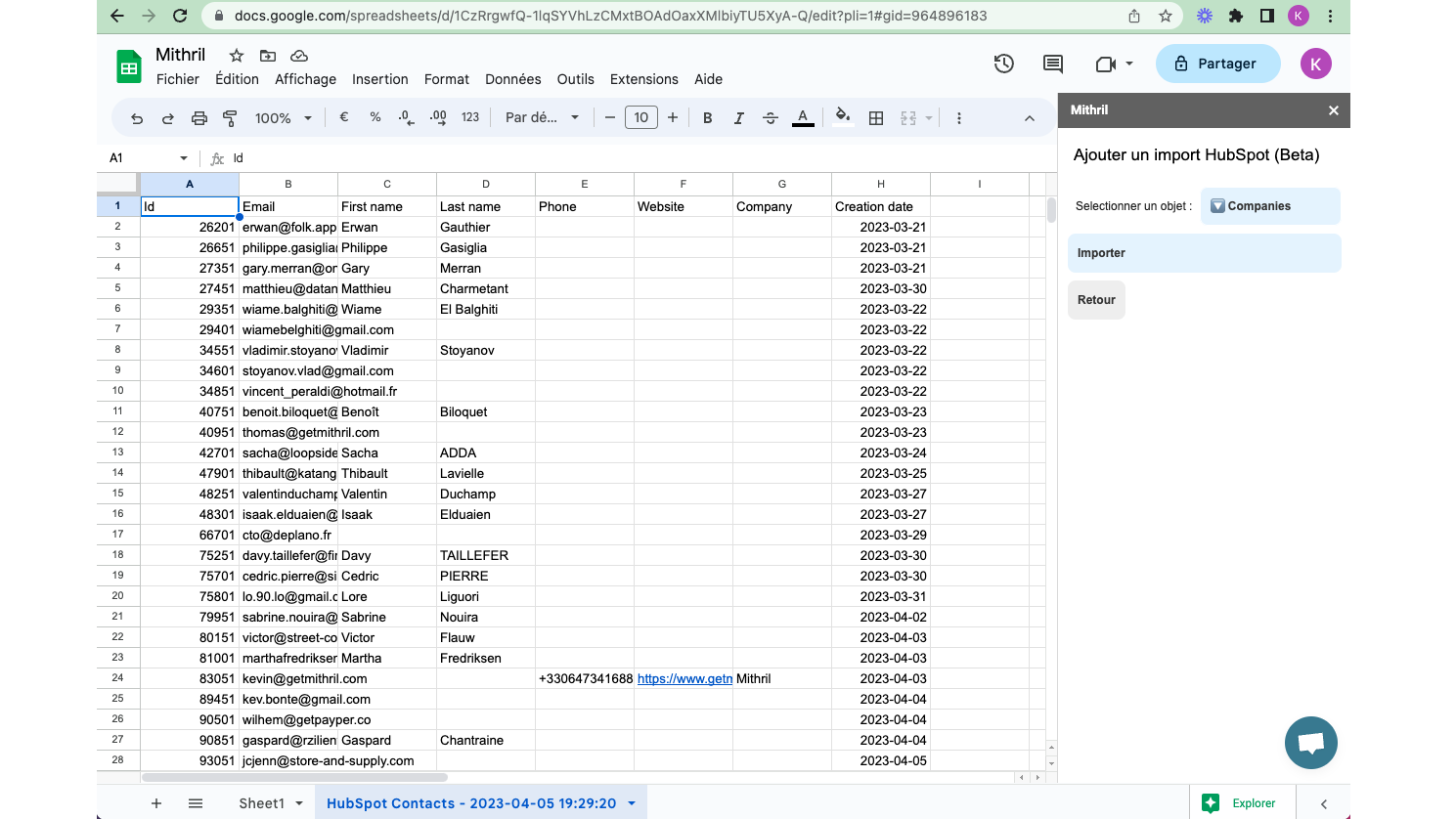 Mithril est une solution no-code qui permet d’accéder aux données de vos outils en temps réel directement depuis vos tableurs.