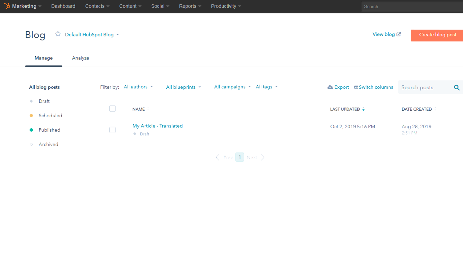The Acclaro Translation connector enables you to select content for translation in over 100 languages and receive high quality marketing translations back into your HubSpot instance for review and publishing. With the Acclaro HubSpot Translation connector, you’ll have easy access to web and landing pages, and blogs, for faster multilingual campaign launches.