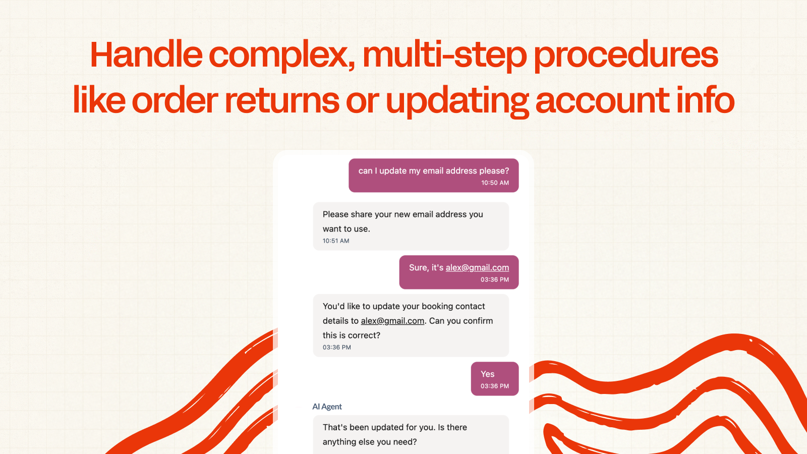 Automated Actions and Tasks: Give your AI tasks to complete (all in natural language), such as refunds, address changes, upgrades and more.