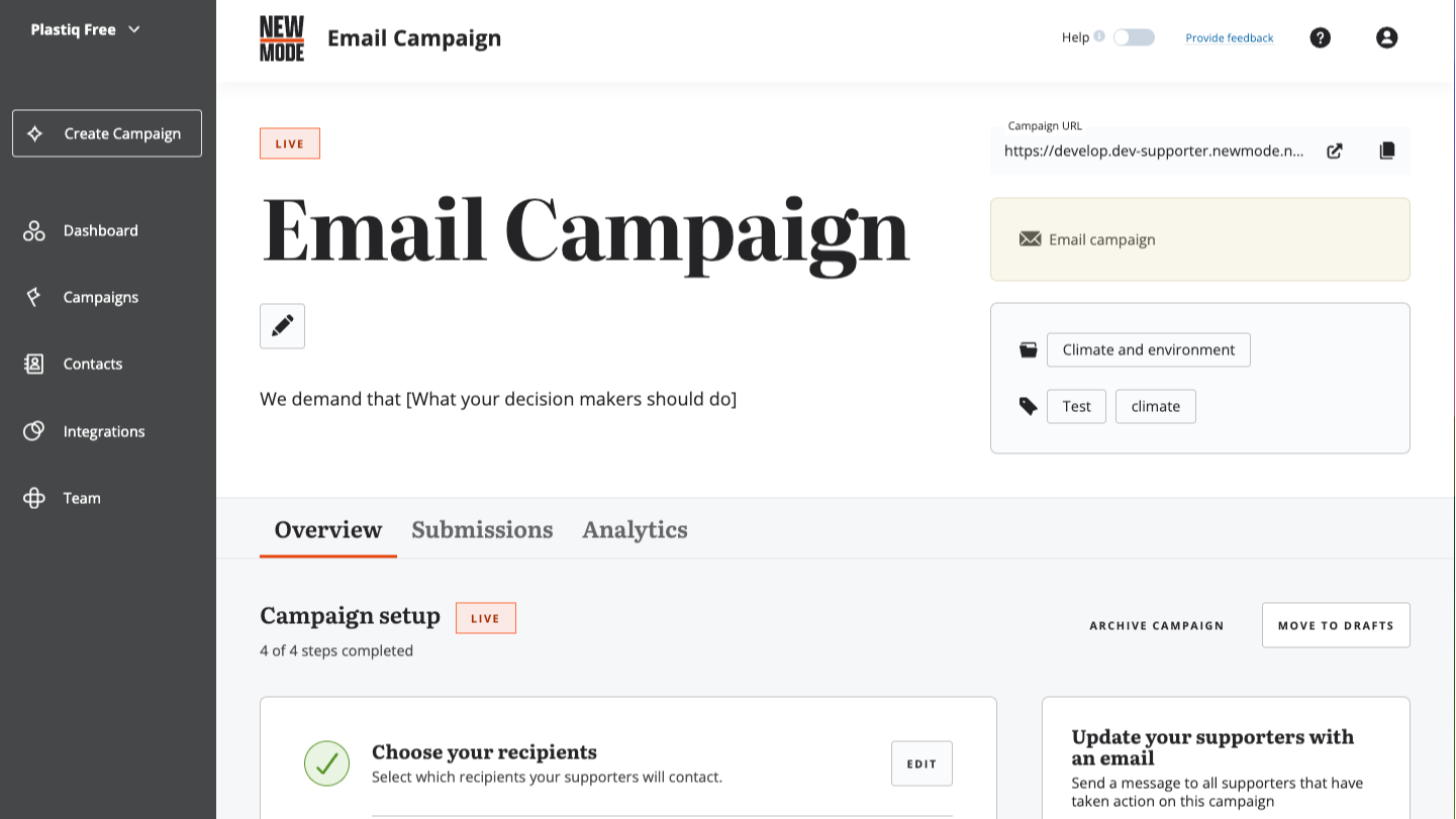 With comprehensive databases, analytics dashboards, and custom emails, you can create online petitions that get you real-world results.