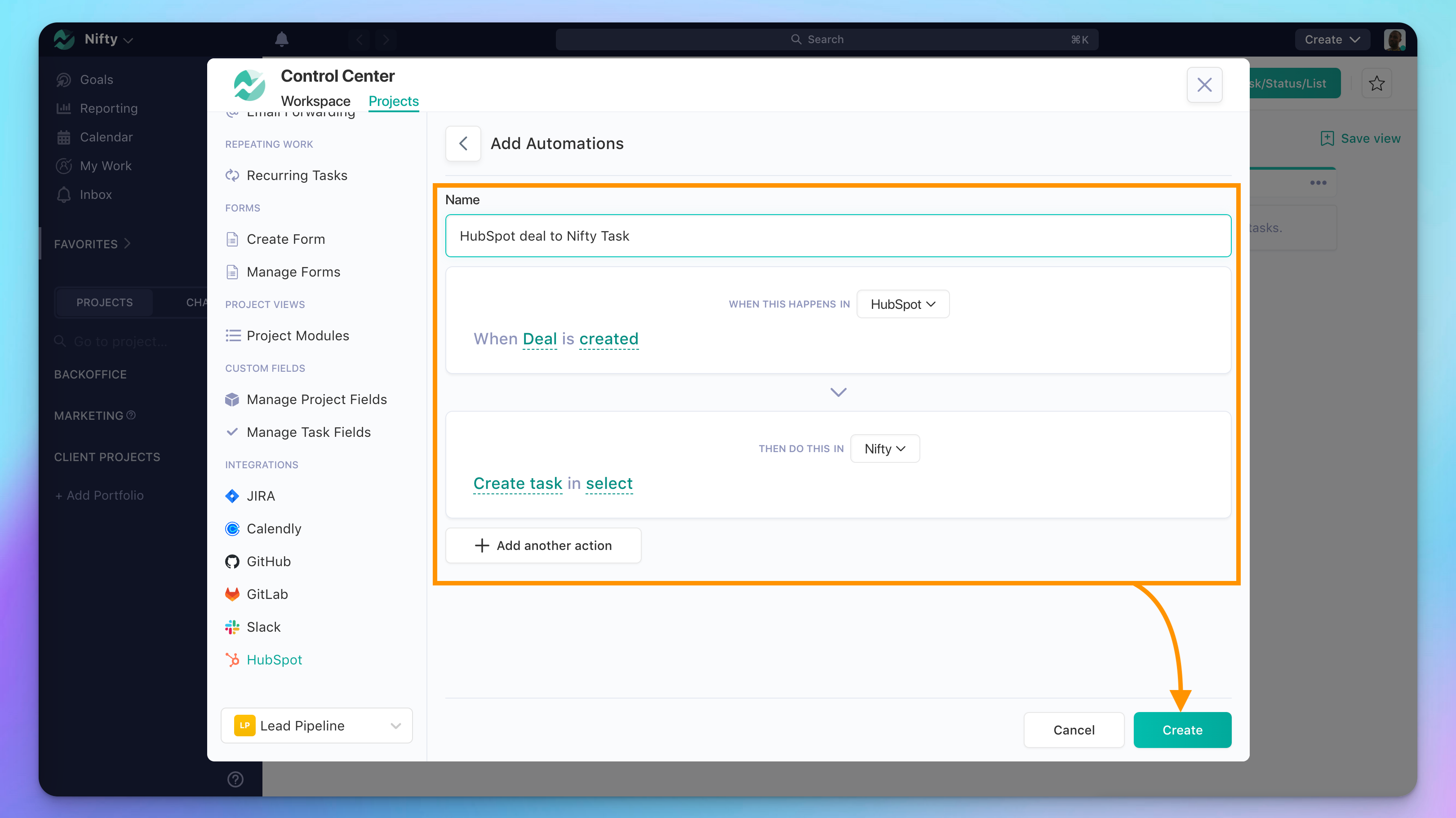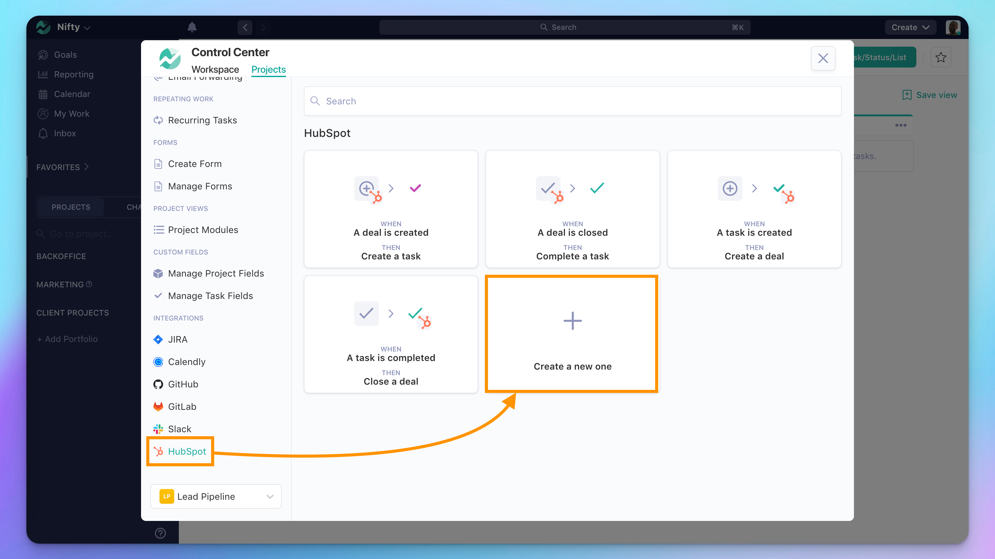 Automate pipeline management on HubSpot to bridge sales and project management seamlessly. With this integration, you can: Create Deals on HubSpot when Tasks are created Close Deals on HubSpot when Tasks are completed …and more