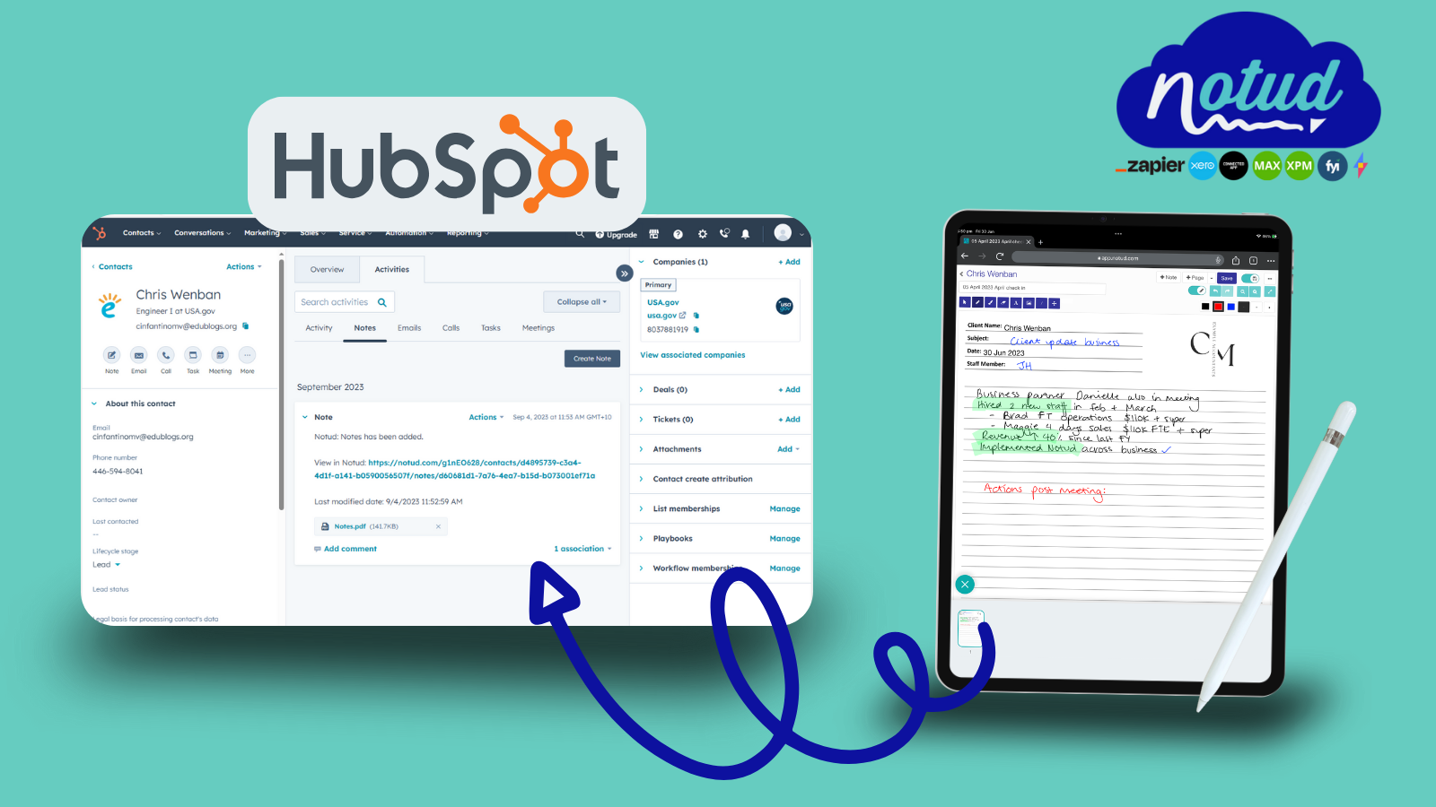 With Notud HubSpot sync, pre-populate your custom templates fields using the information on HubSpot and take notes for you contacts.