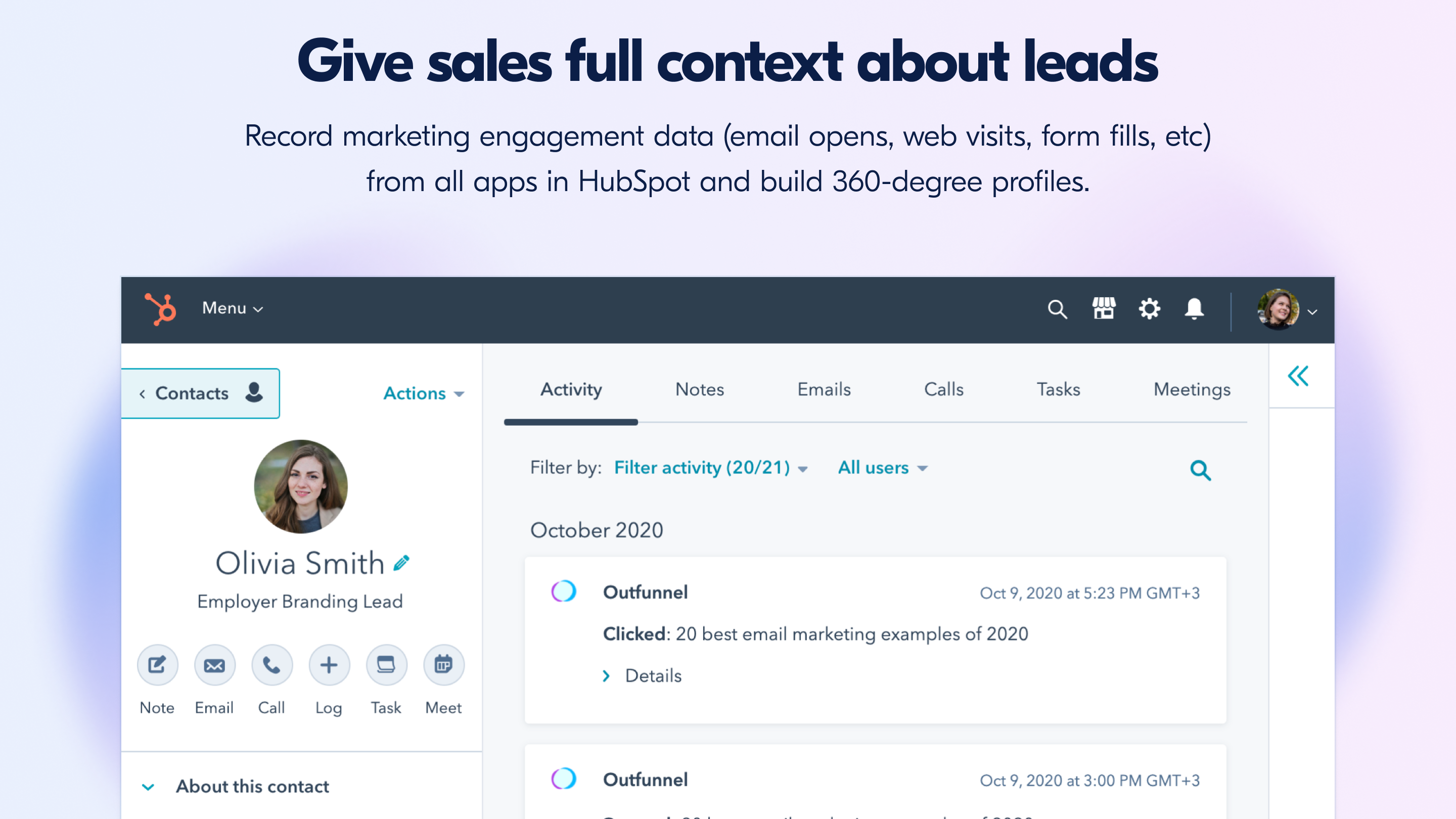 Automatically record Mailchimp or Klaviyo email opens, clicks, and unsubscribes in HubSpot to give salespeople more context.