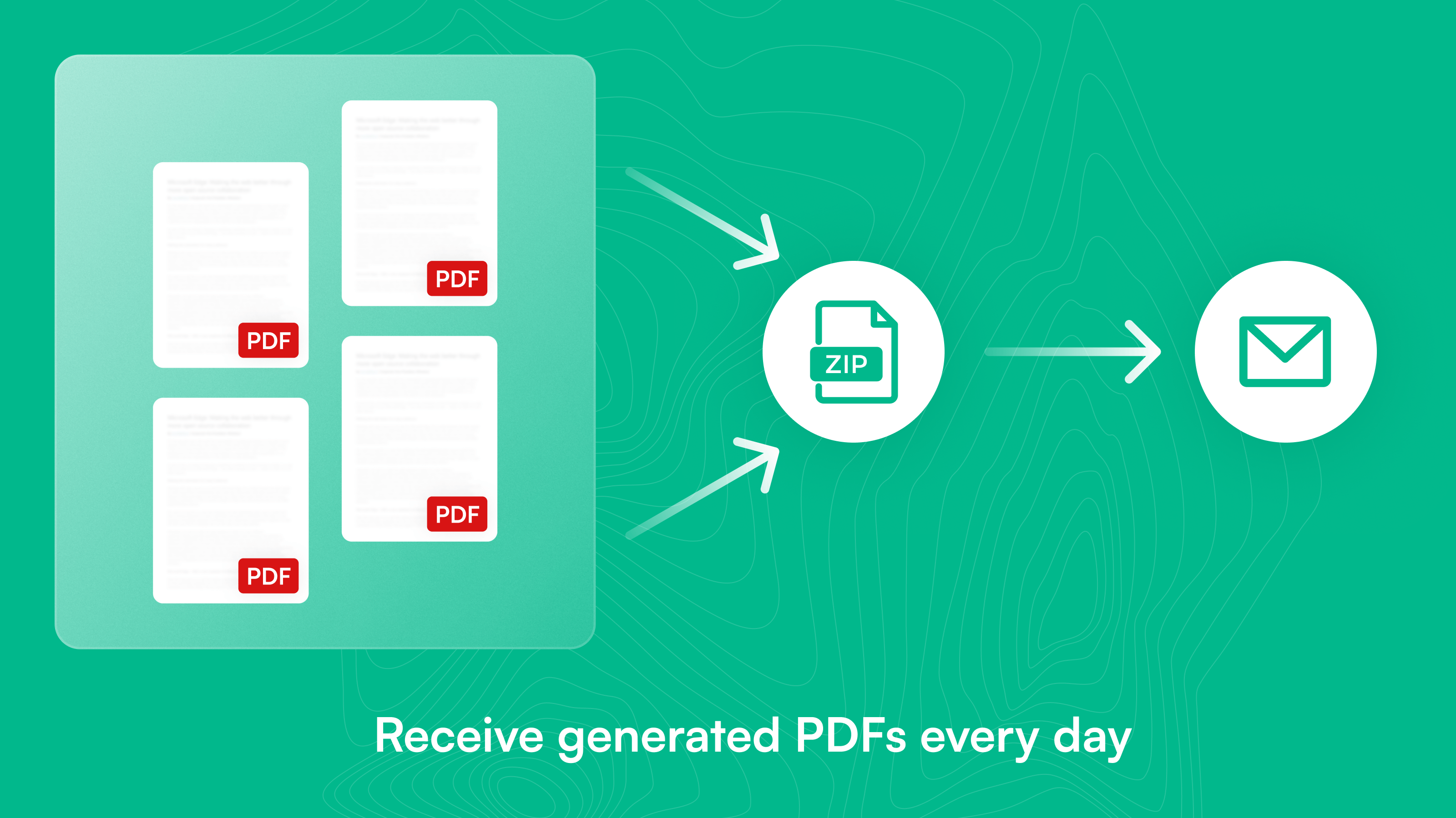• To receive the newly generated PDFs every day, activate the PDF zip delivery feature and specify the email address. • Convenient! 😴