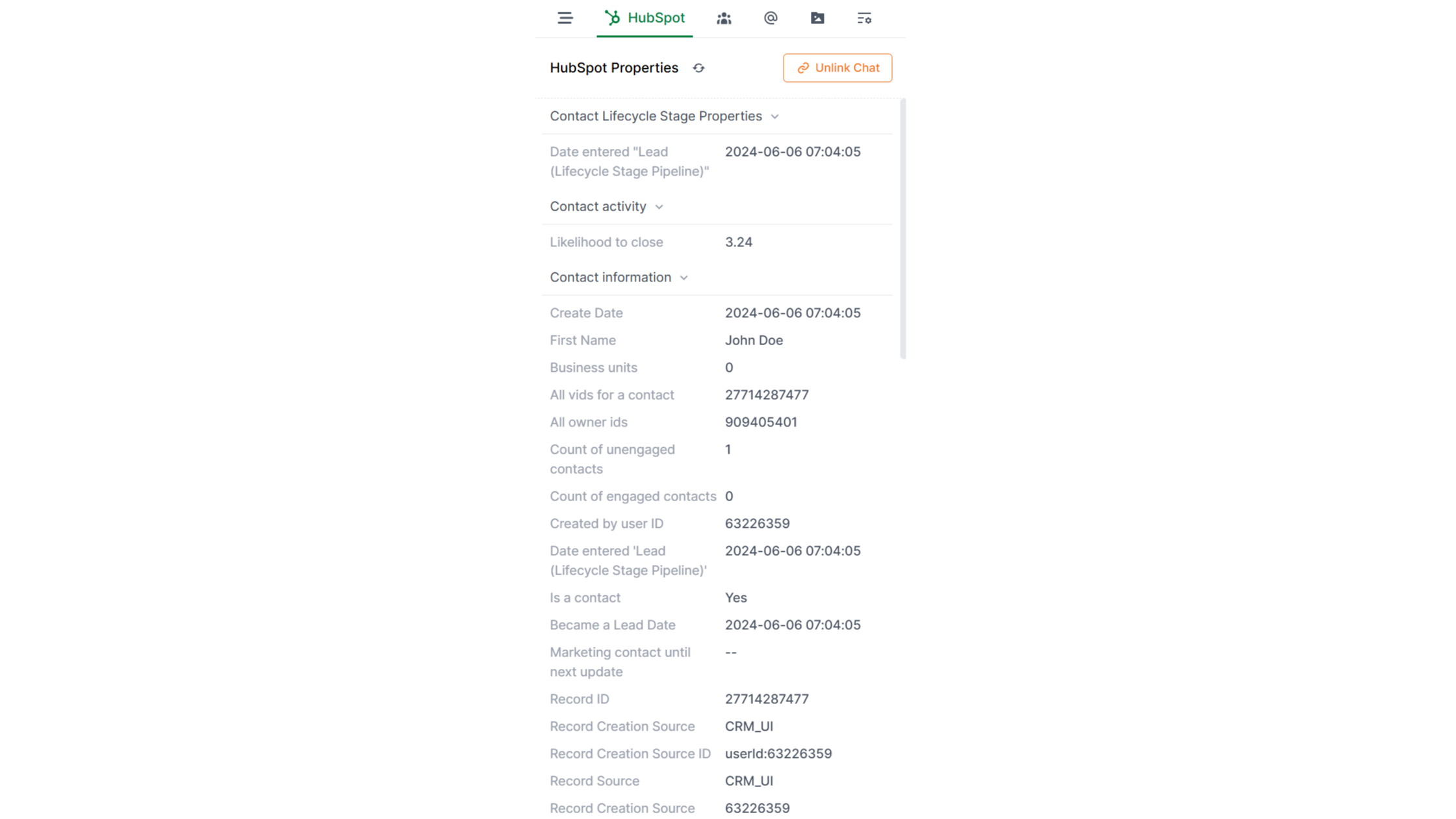 User can link WhatsApp chats to HubSpot objects (contacts) via Periskope or HubSpot and track HubSpot properties on Periskope