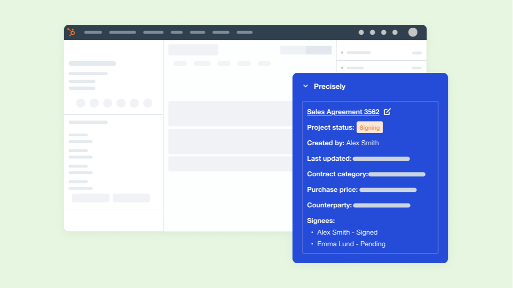 Connecting Precisely and HubSpot is easy - no coding is required. Simply map your HubSpot fields to the data input in your contract template and you’re ready to go. Try it out with our 14-day free trial.