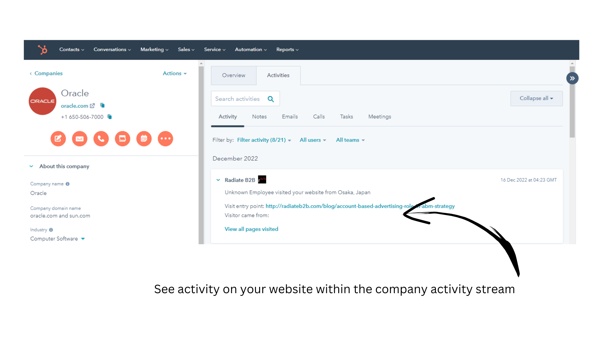 See when companies visit your website and the activities they take including which pages and how long they spent on each.