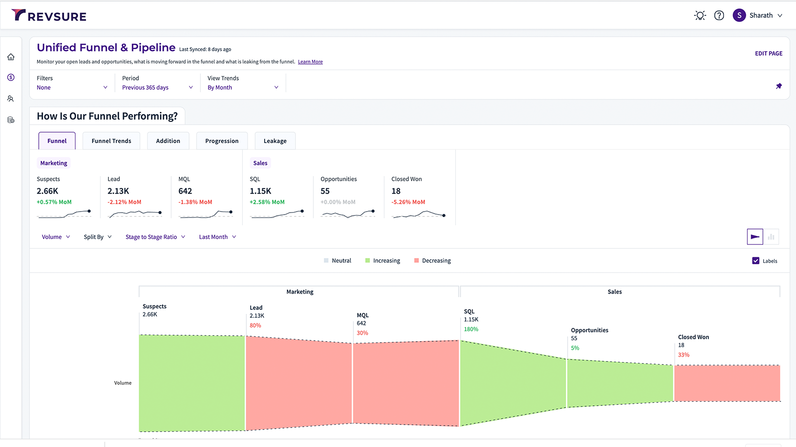 RevSure integrates your marketing automation and CRM software to analyze all of your data, providing a line of sight into pipeline generation - not only for the current quarter, but the next few. Unified Pipeline & Funnel. A connected 360 view of your marketing and sales funnel.