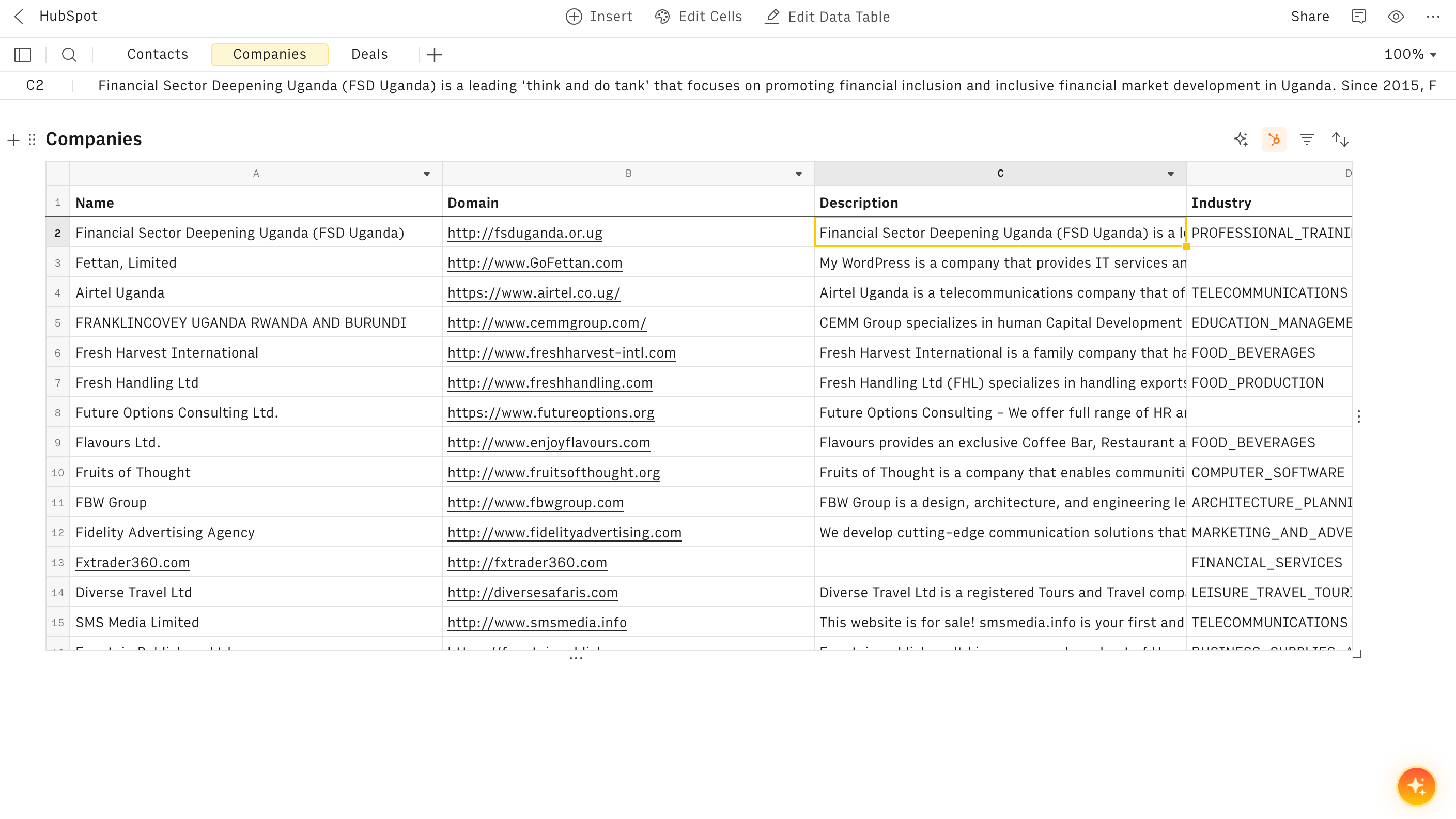 Connect Rows to HubSpot to retrieve, add, edit, and remove companies directly from your spreadsheet. Keep company records accurate, enrich firmographic data, perform updates, and maintain a clean, organized CRM, all from within Rows.