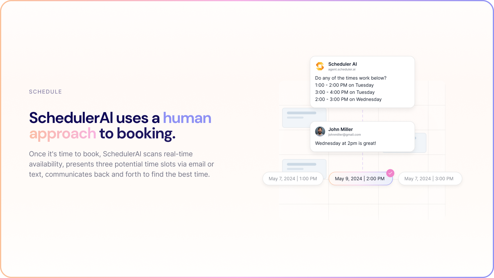 SchedulerAI uses a human approach to booking.
