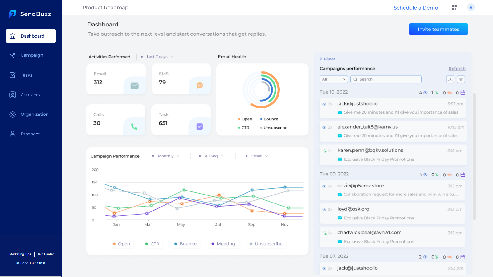 SendBuzz helps organizations and marketers run their cold sales engagement and outreach campaigns. Improve your conversion rate, improve your lifetime value, and bring your customer acquisition cost (CAC) down with effective sales engagement platform.