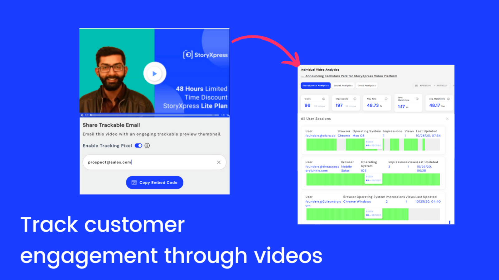 Make your conversations more lively with ease. Embed your videos into emails with an engaging GIF or to your landing page with our ready-to-use, lightweight and responsive embed code. You can use this information to run subsequent campaigns or pass the MQLs to the sales team.