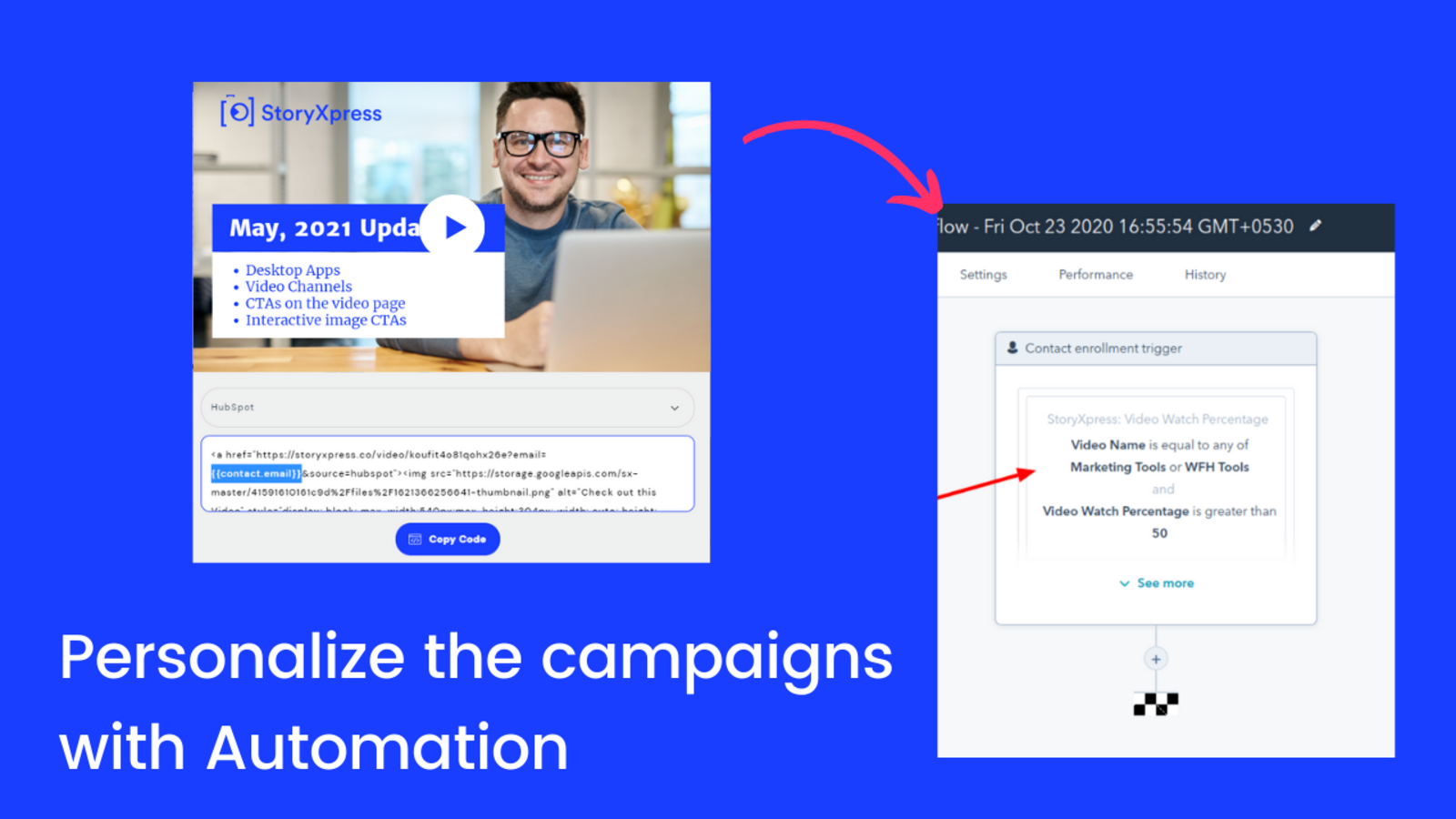 Personalise your email campaigns by adding different StoryXpress Activities as a criterion to target viewers. Assess your leads according to their watch preferences and decide the next steps. Add the human touch to all your marketing activities. Enrol your prospects into Video-based sequences.