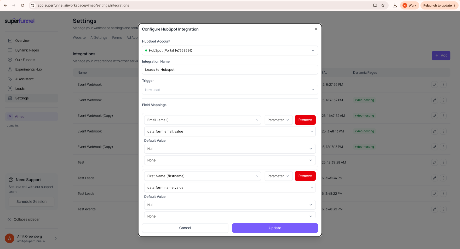 Map any field from your SuperFunnel forms directly to specific HubSpot properties. Whether you are capturing standard info like email or custom data like "Budget" or "Role," you can ensure every piece of data lands in the correct field in your CRM.
