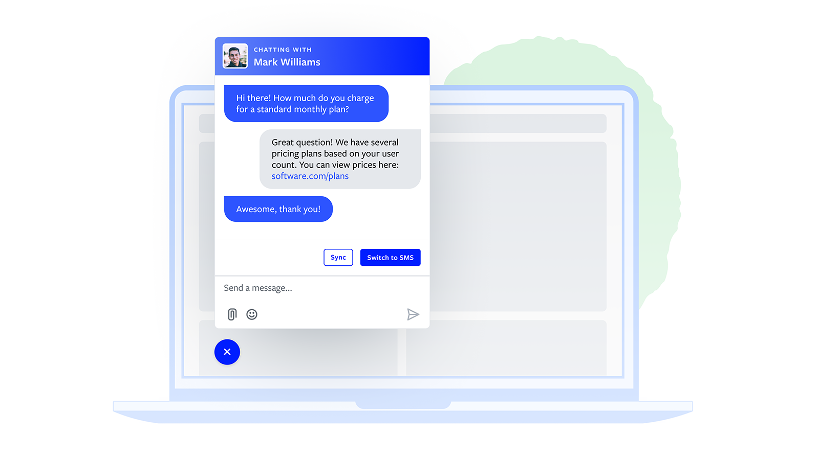 Give website visitors an easy way to reach you. Textline’s webchat feature allows contacts to initiate a conversation on your website and seamlessly switch it to SMS. Cut down on abandoned webchats and missed opportunities to connect.