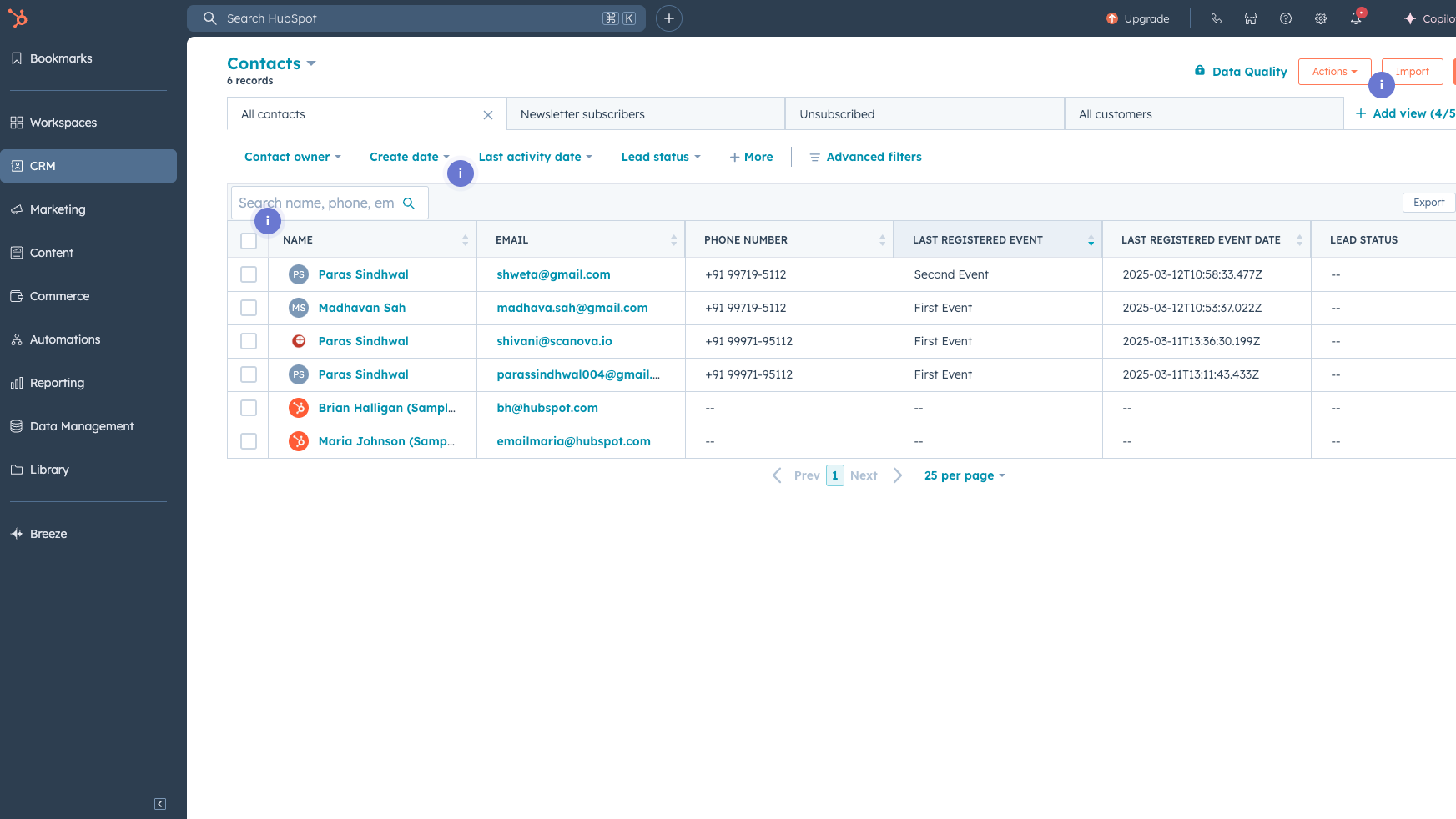 If a guest registers again, their details are automatically updated on HubSpot, along with their relevant activities.