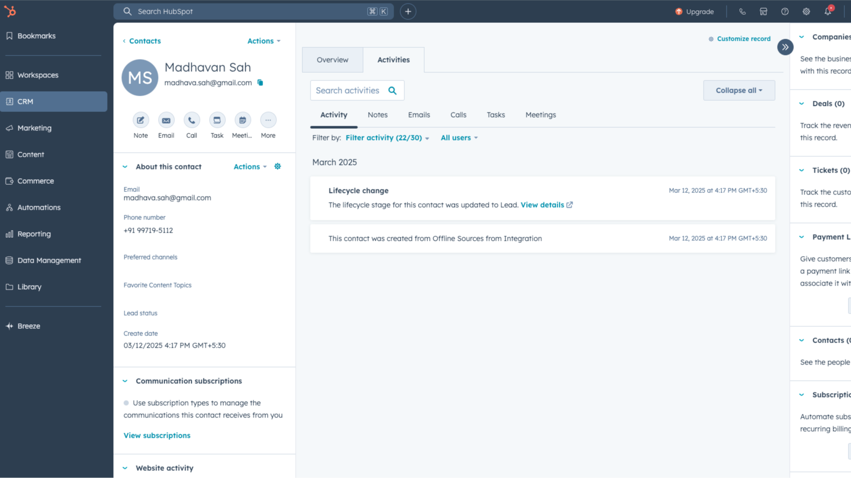 Key details of your guests such as Name, Email, Phone Number, Event Name, etc are automatically synced with HubSpot Contact.