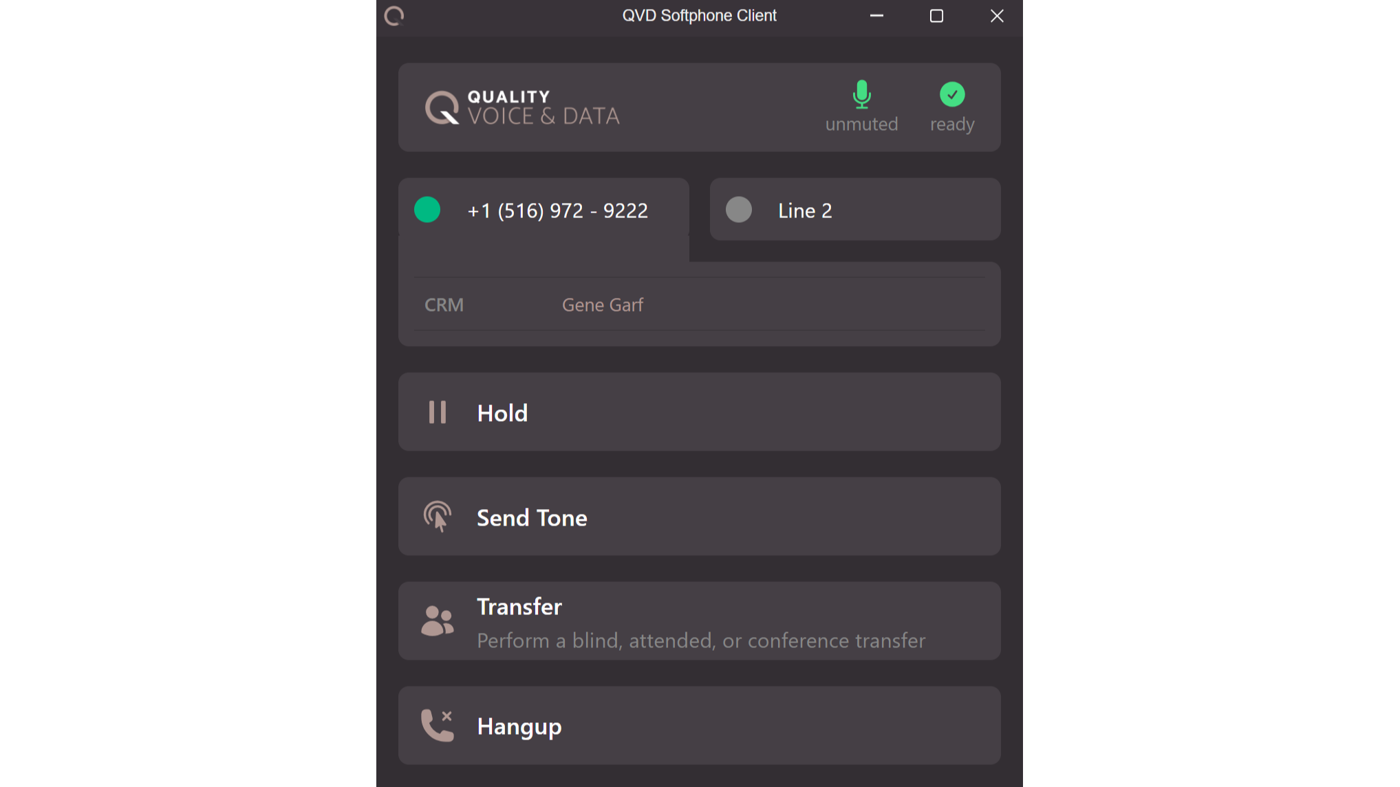 A 2 line, fully embedded softphone allows for both warm & blind call transfer.