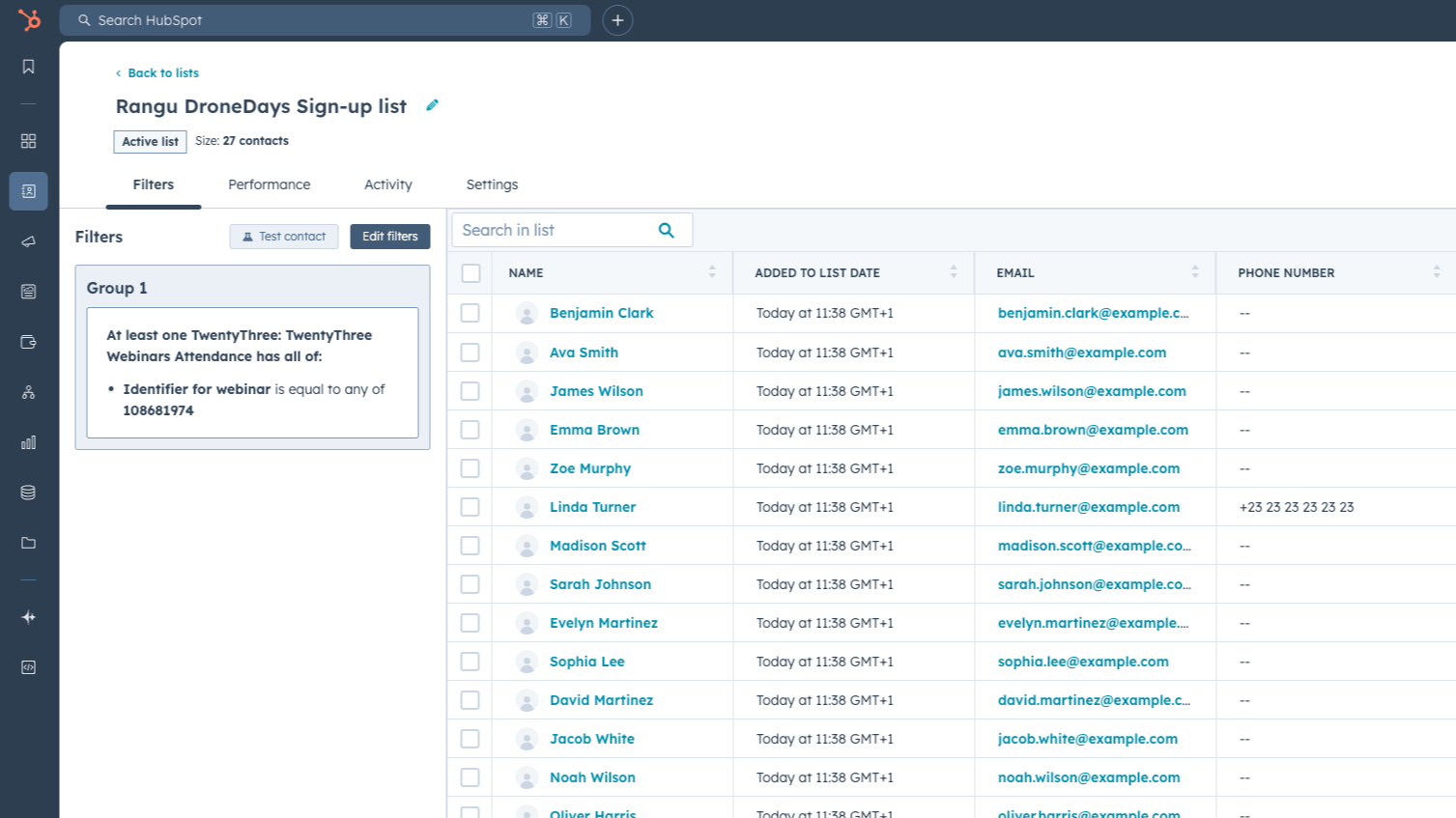 Segment users based on behavior, video usage or specific webinars via smart lists in HubSpot.