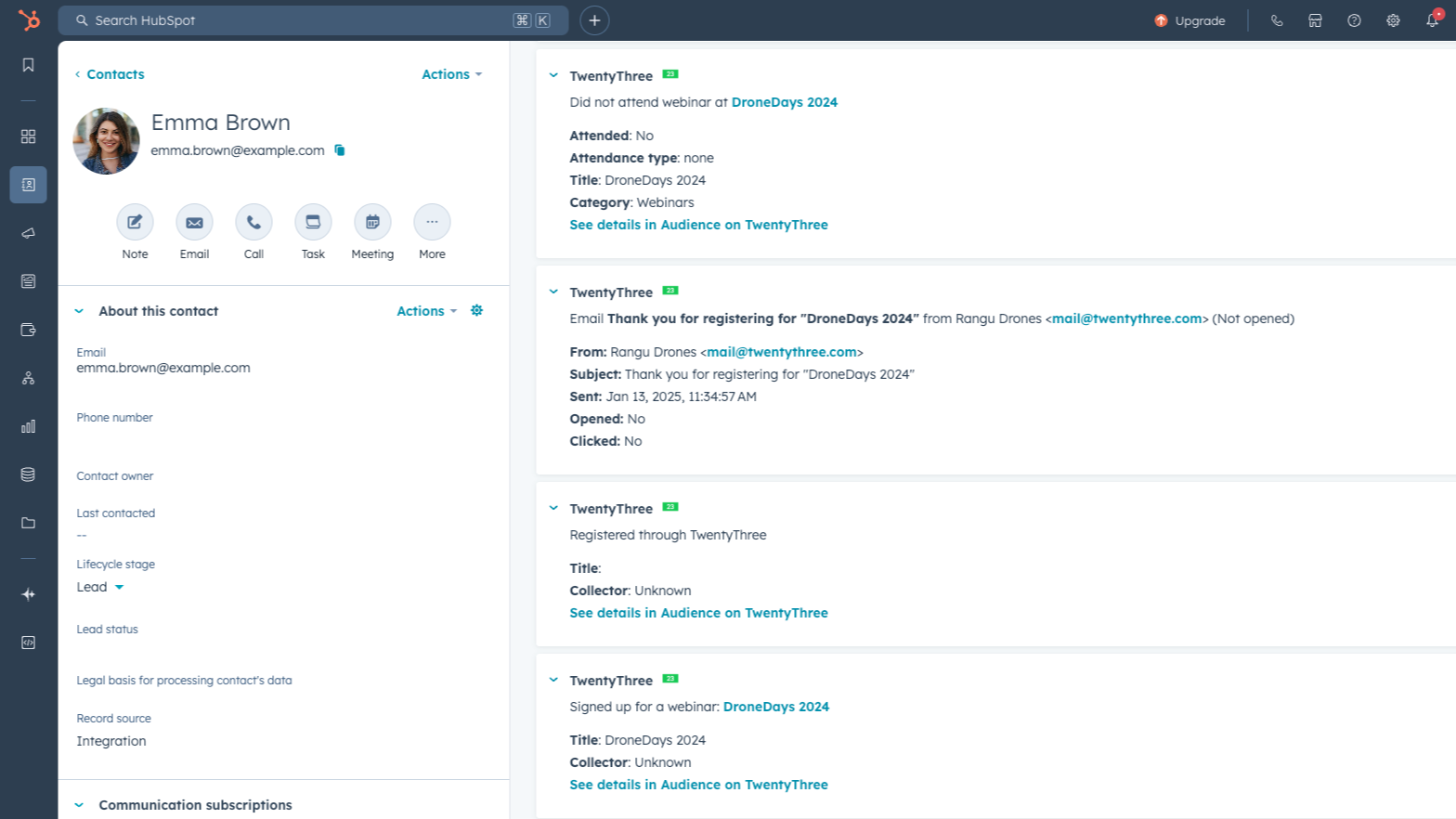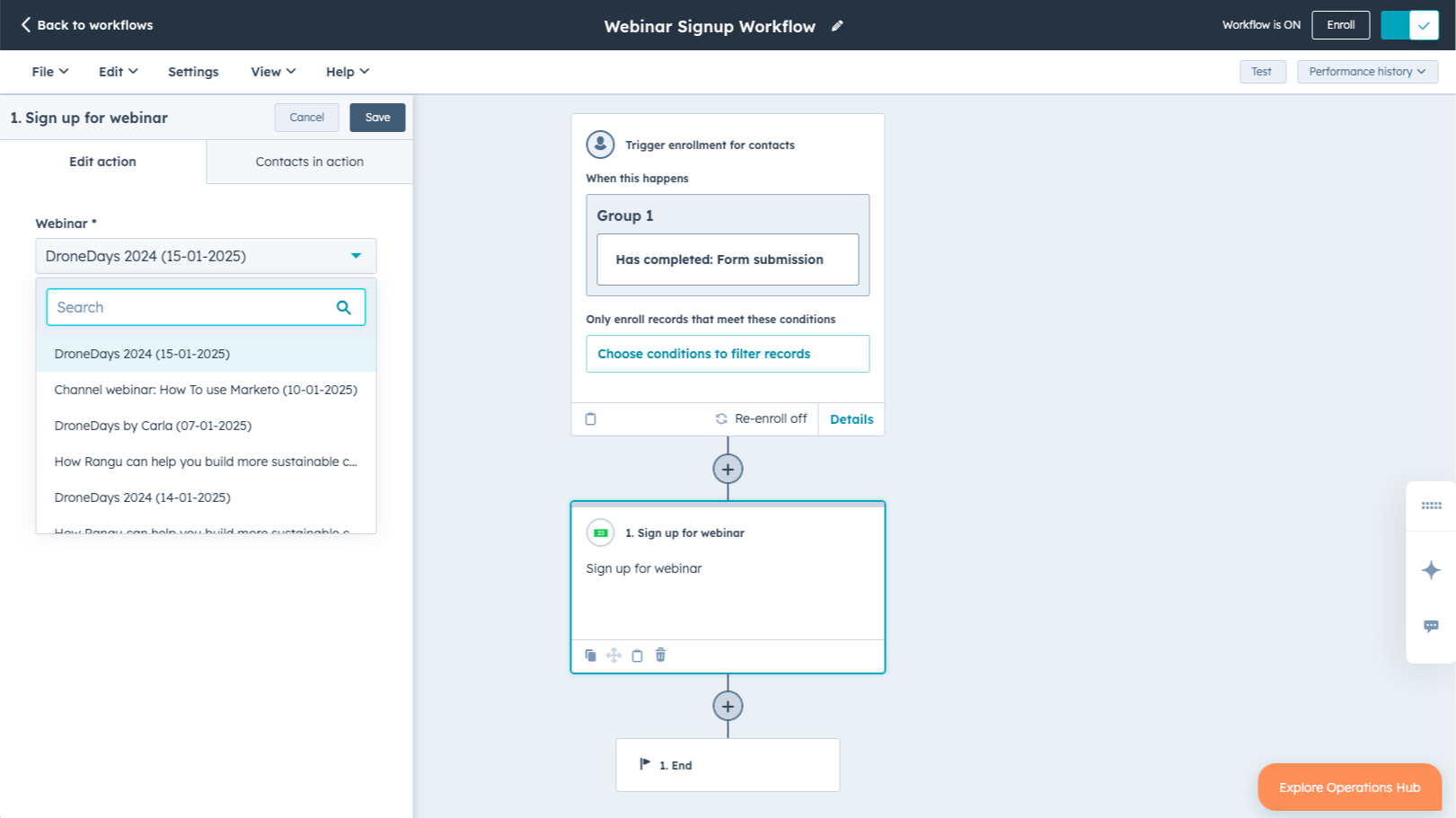 Using HubSpot Workflows to automatically register any contact for webinars.