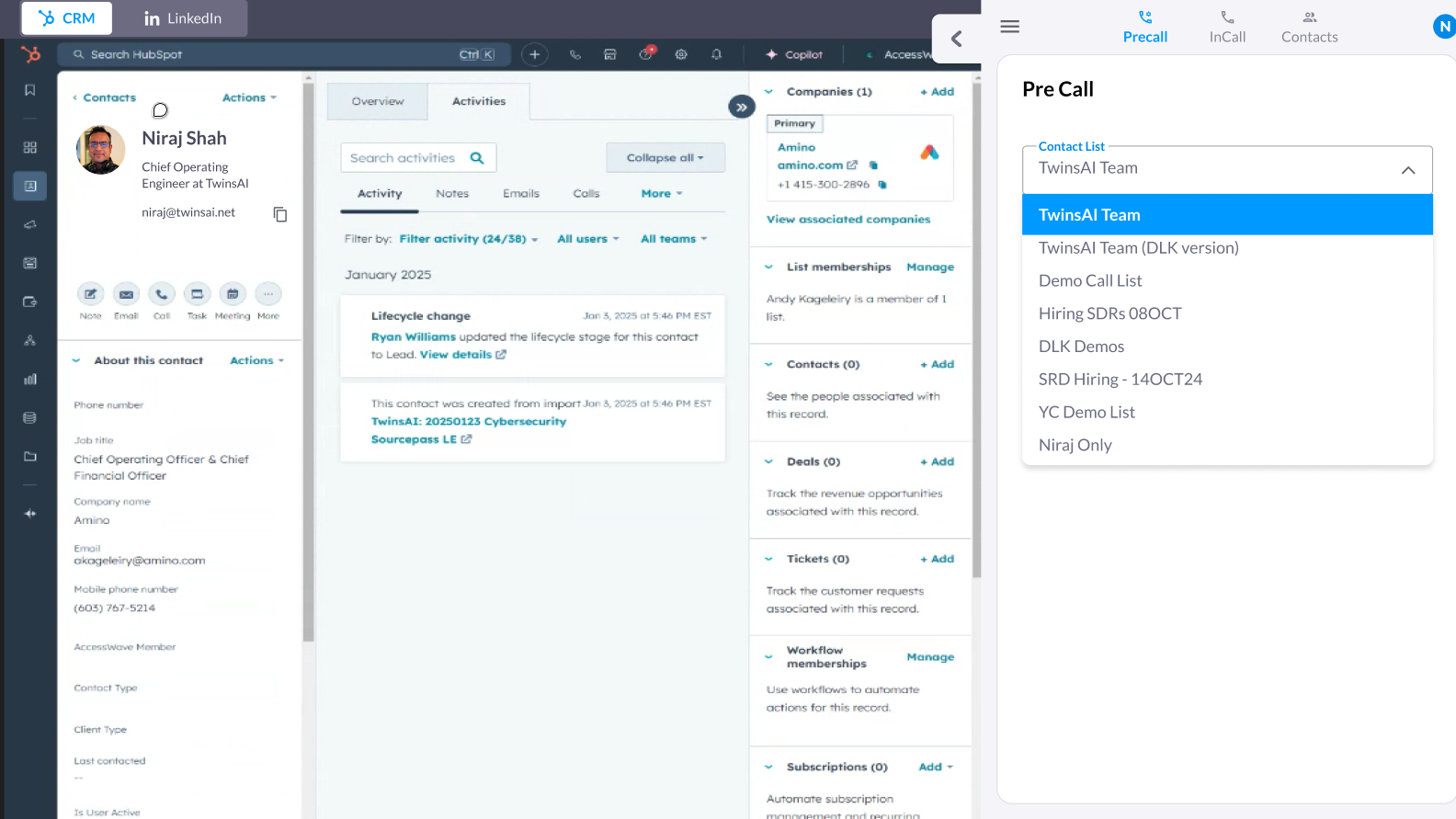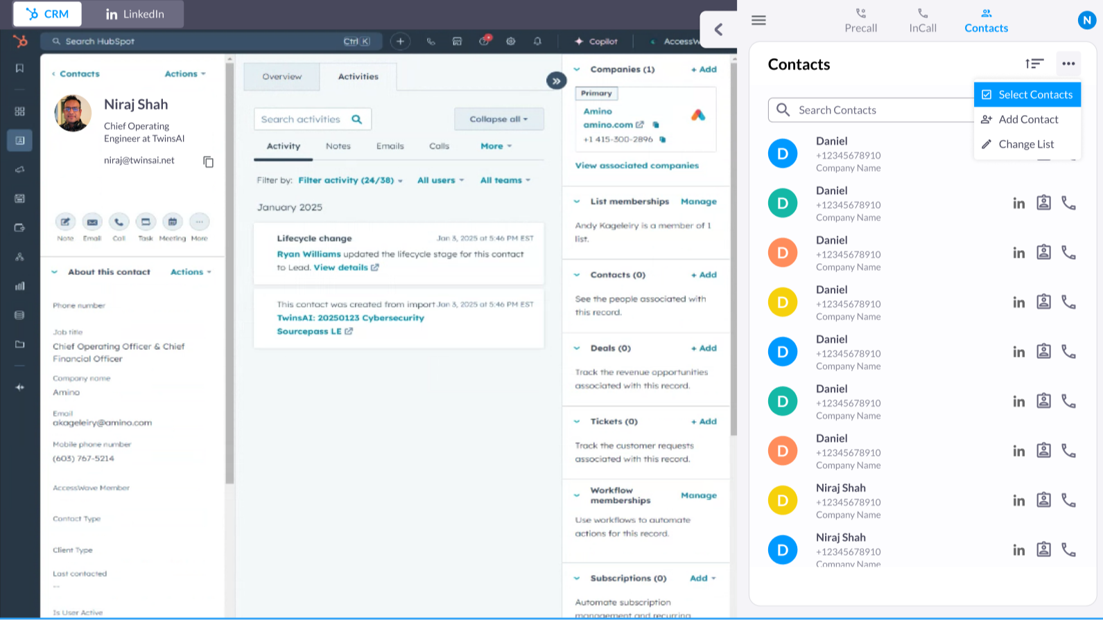 Effortlessly sync your HubSpot lists with TwinsAI, ensuring your contacts are always up to date for seamless AI-powered outreach
