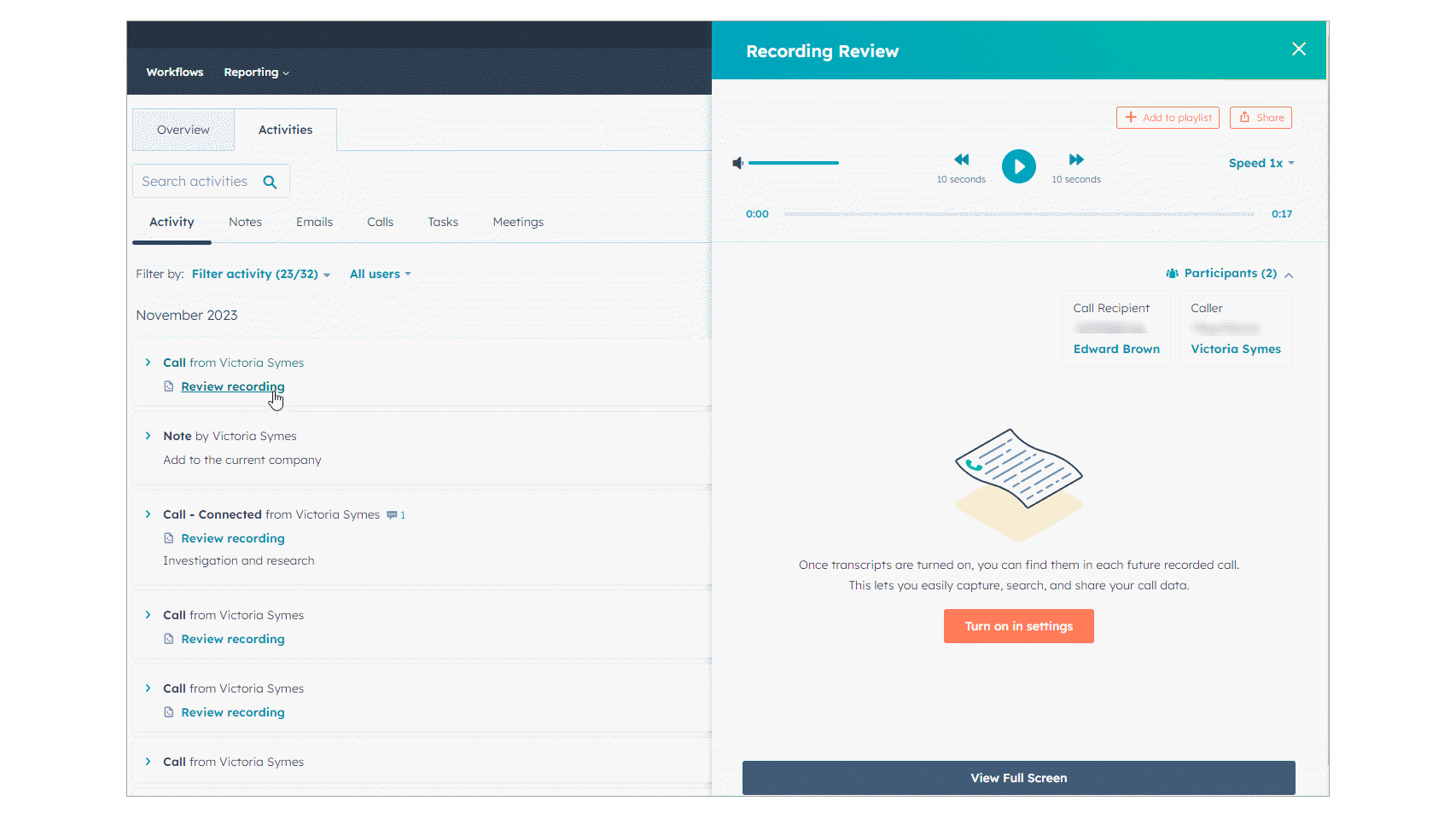 Listen and download the call records right from the contact card after the call ends.