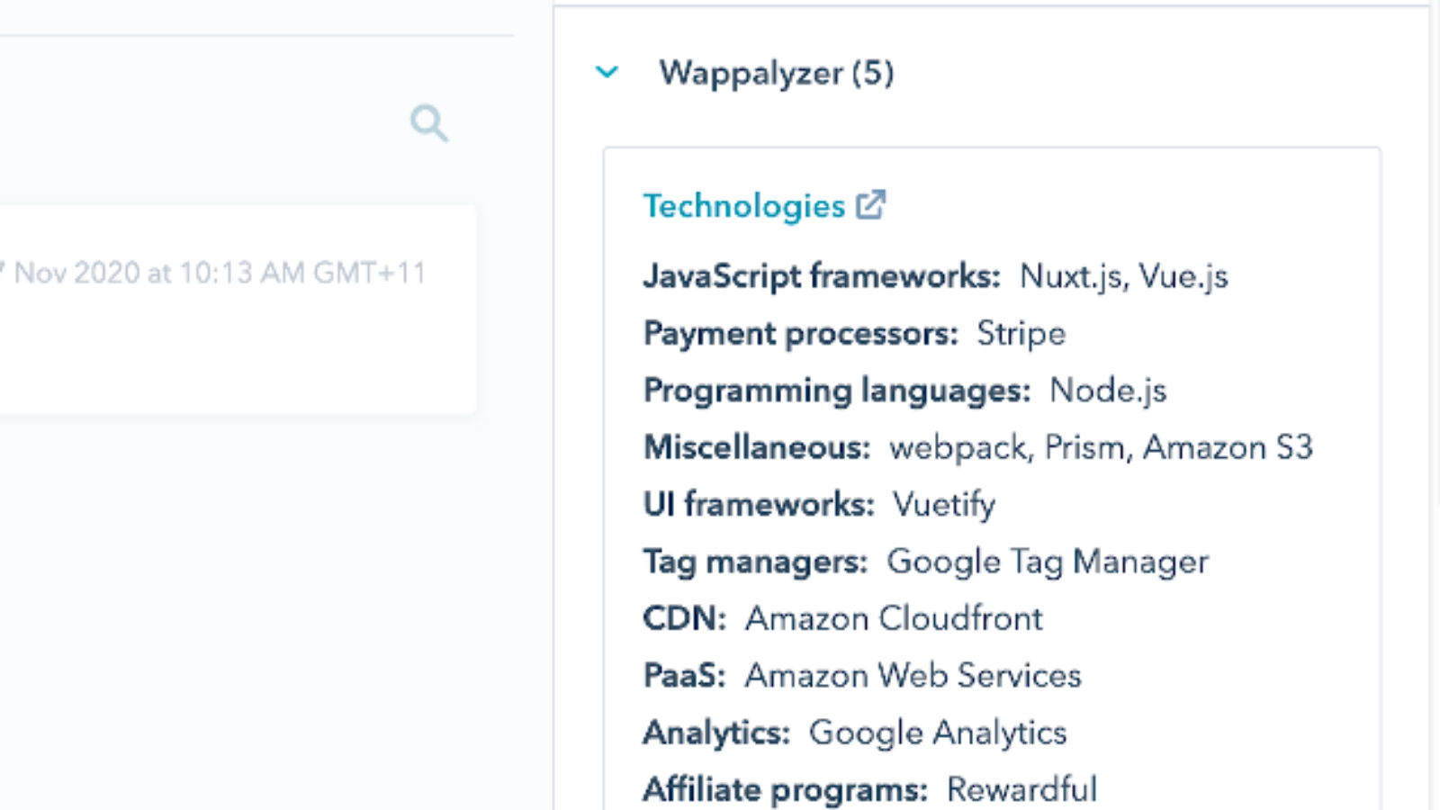 Wappalyzer tracks the technologies of the websites of millions of companies world-wide. Find out your prospect's e-commerce platform, CMS, marketing tools or any other web technology.