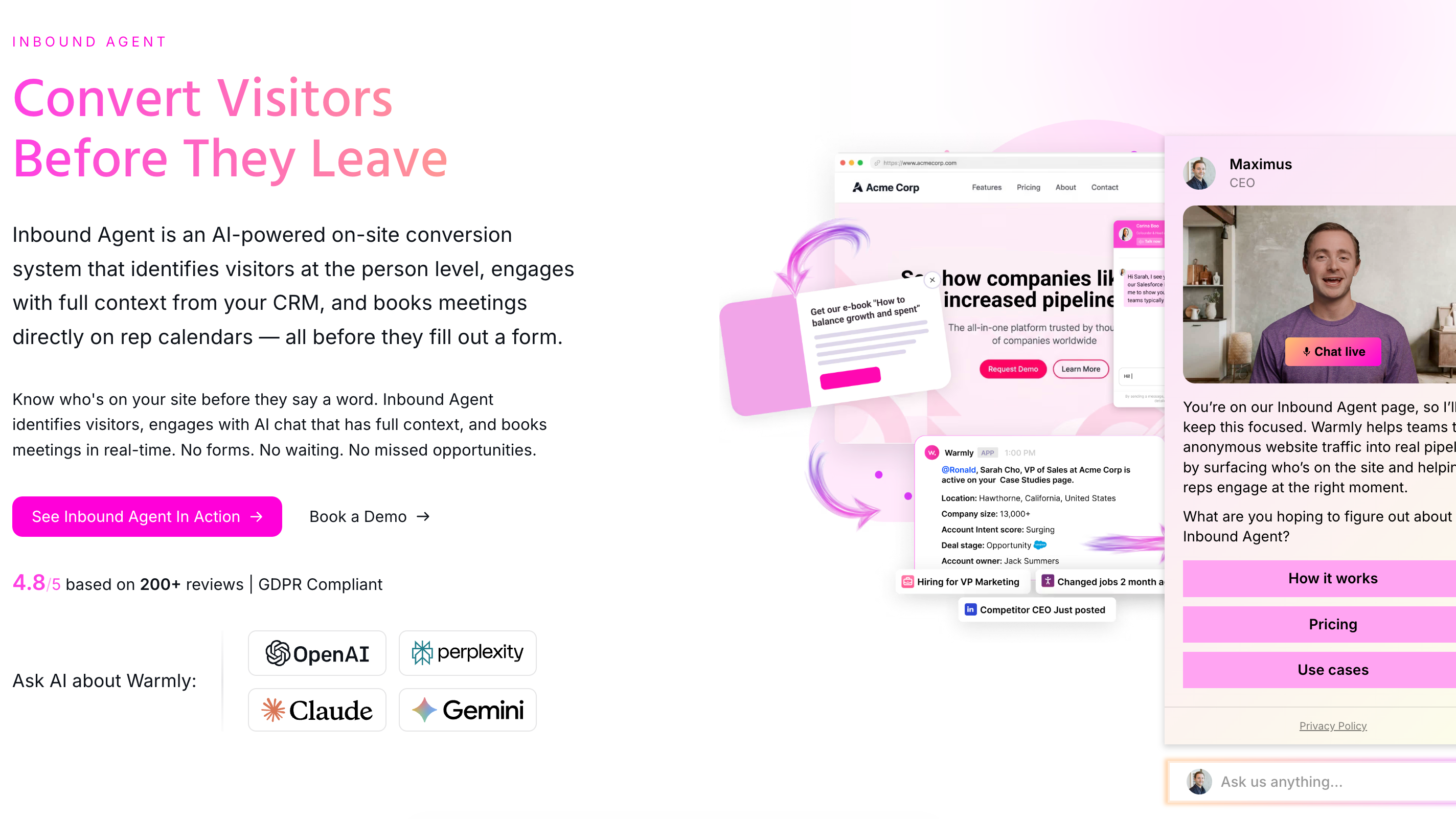 1/10 - AI Inbound Agent for Warmly demo'ing how to close leads with AI