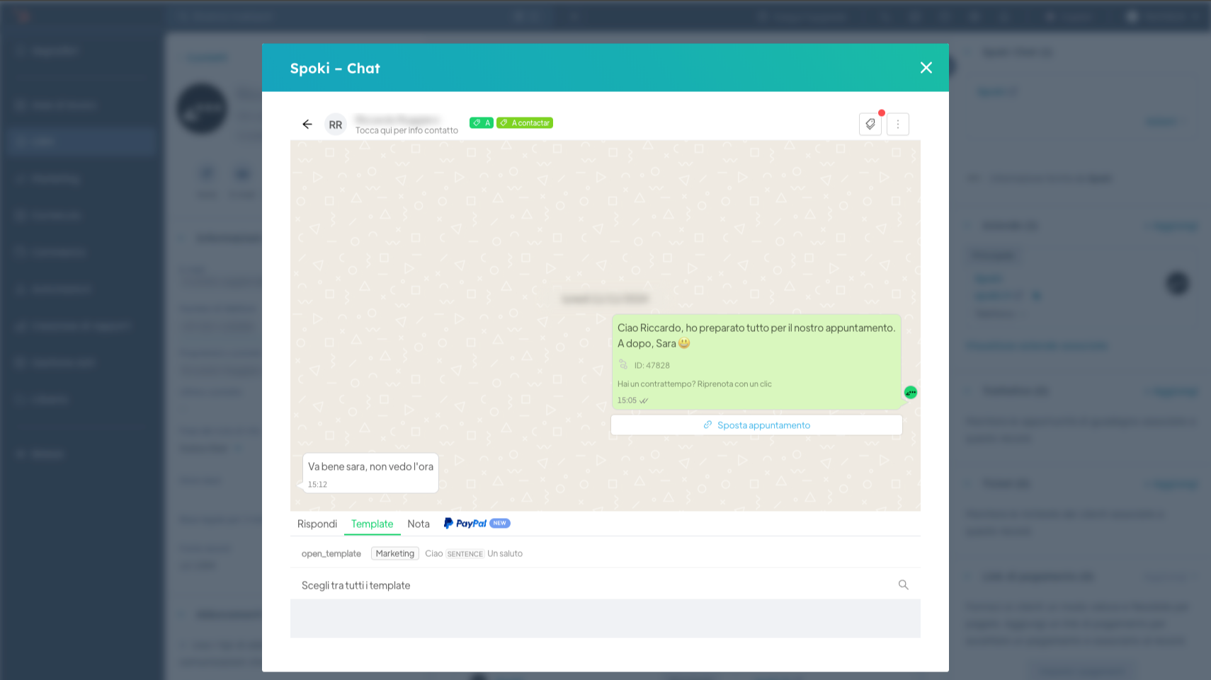 Opening the Spoki chat in the CRM tab will open the chat with the contact, if absent on Spoki it will be created accordingly based on the primary information retrieved from the HubSpot contact.
