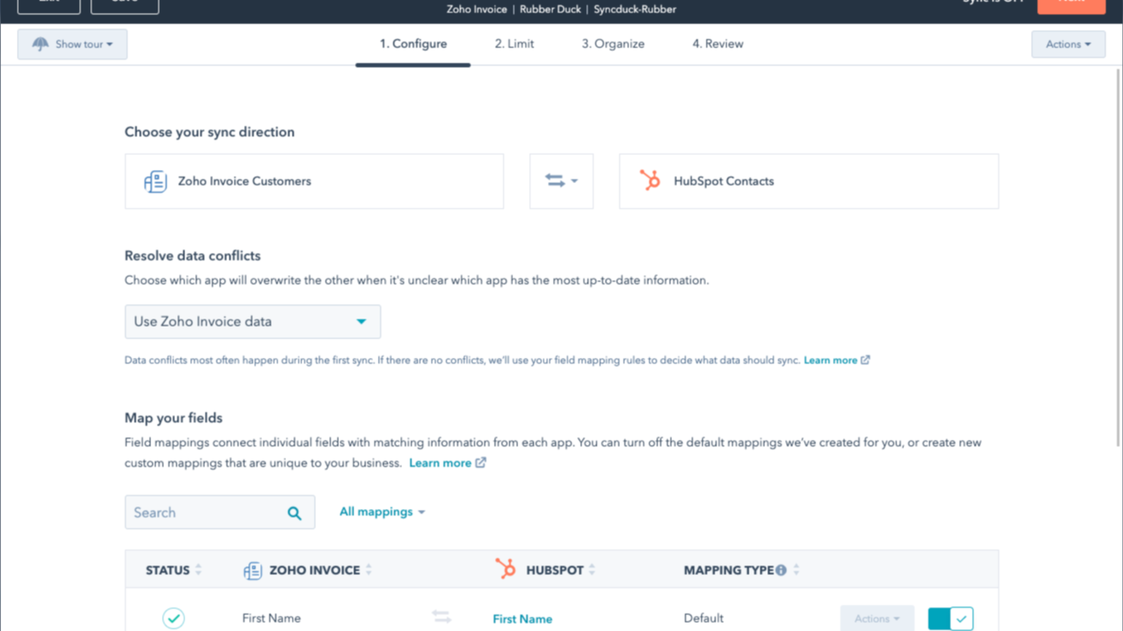 - Two-way sync: Data is shared between Zoho Books and HubSpot in real time